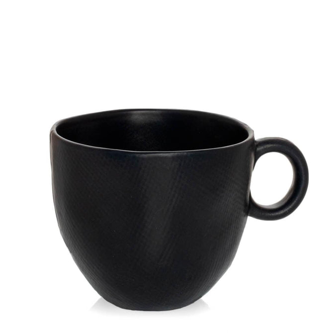 The Graphite Mug combines a minimalist design with modern clean lines. The soft-edges of each piece adds a relaxed feel, while the matte black color and subtle textured pattern brings a dramatic touch to the table.