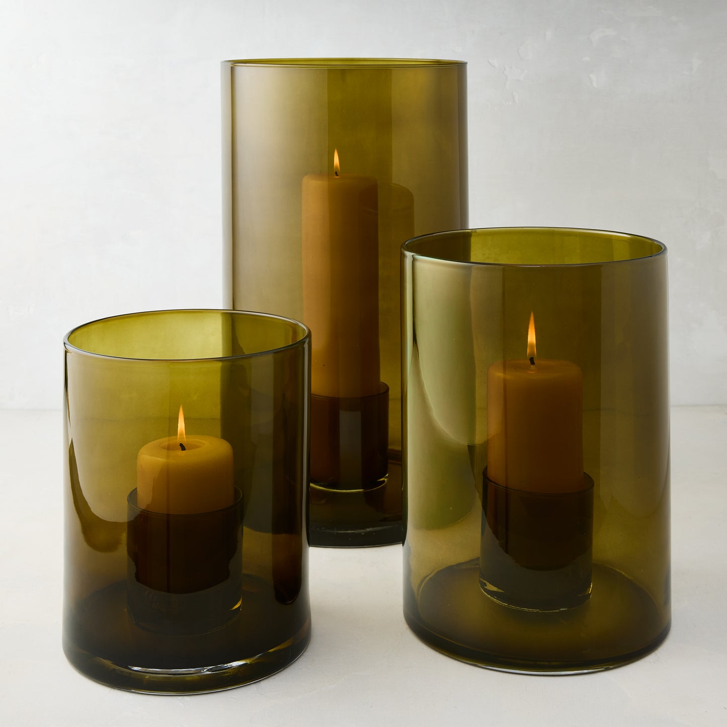 The deep green tone adds a sophisticated touch to any setting, while the minimalist design keeps it modern and understated. Despite their dramatic presence, these hurricanes maintain a simple, clean aesthetic that complements any decor. Whether used as a single statement piece or in a cluster for a more impactful display, these hurricanes bring a touch of European craftsmanship and effortless style to your home.