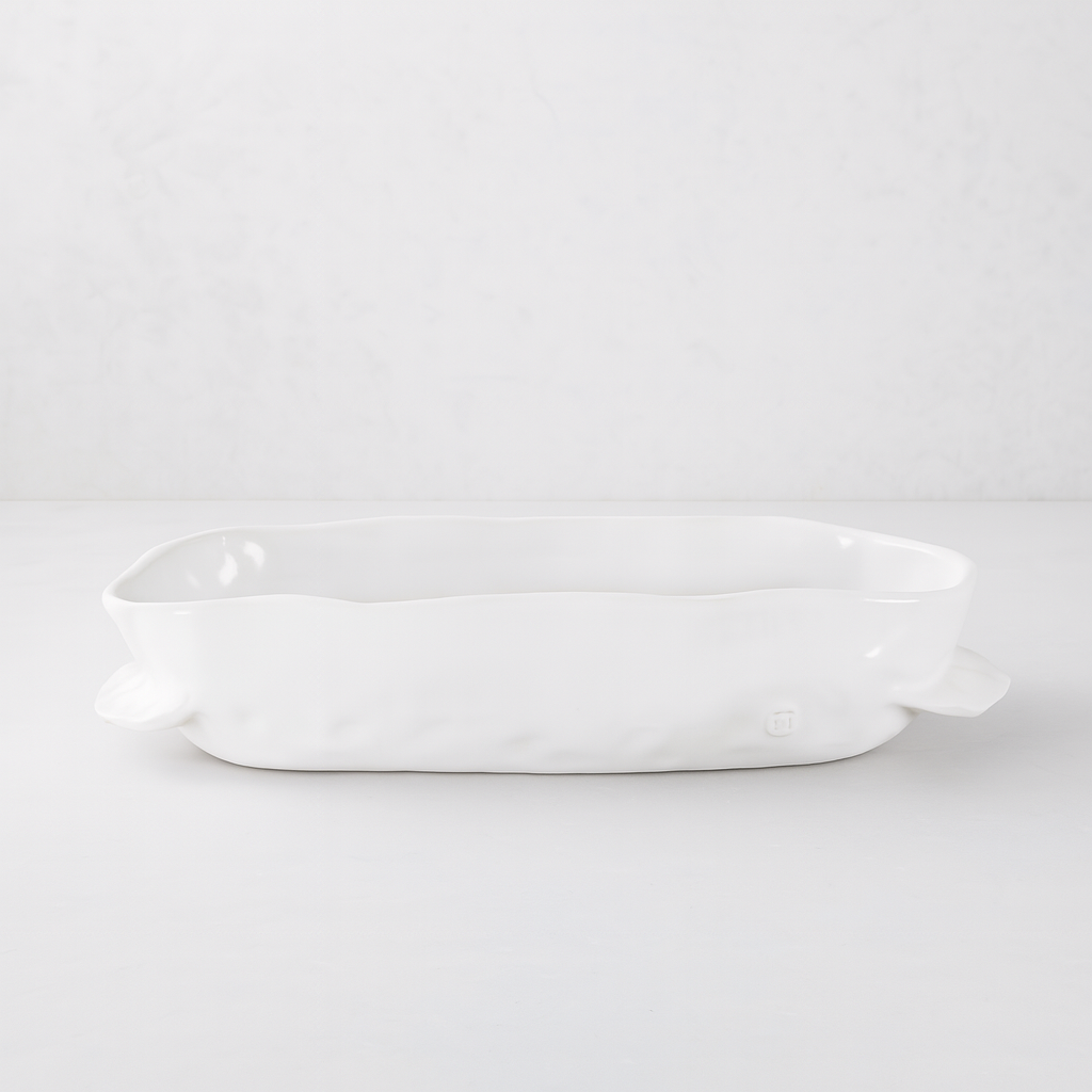 We cannot get enough of this beloved, handmade Peruvian Ceramic Baker 5208 by designer Monica Porter. An organic-shaped baker with endless uses — from serving casseroles to macaroni and cheese . The creamy white glazed pieces complement our signature serveware and dinnerware.