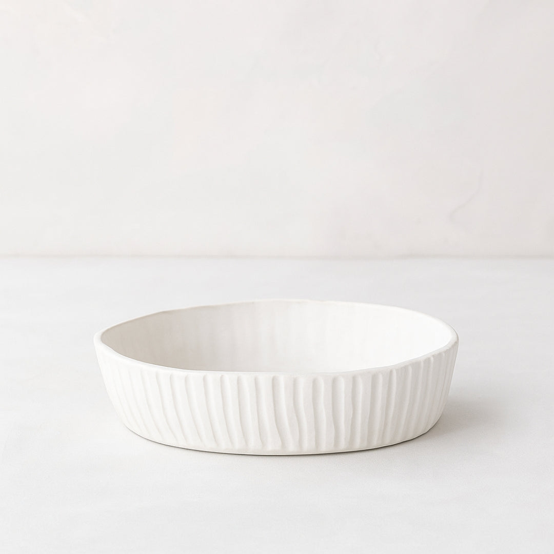 Made in Peru, each piece in the Montes Doggett line is handmade from high quality clay that is shaped and fired for durability. The natural materials and white glaze make every piece lead-free, microwave, dishwasher, and oven safe. Designed to embrace organic shapes and textures, these pieces are made to be used. From food storage and serving to decoration, each piece is as stylish as it is functional.