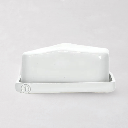 We cannot get enough of these beloved Peruvian ceramics by designer Monica Porter. Our favorite butter dish. With their creamy white glaze, the handmade pieces complement our HG signature serve ware and dinnerware.