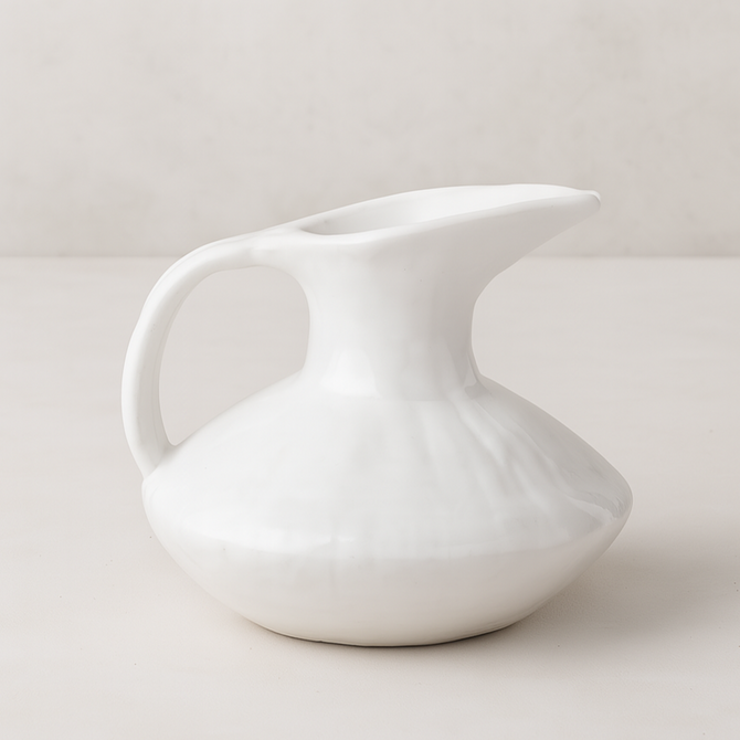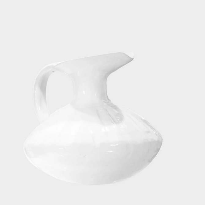 We cannot get enough of this beloved, handmade Peruvian Ceramic Pitcher 5431 by designer Monica Porter. An organic-shaped piece with endless uses.The creamy white glazed pieces complement our signature serveware and dinnerware.