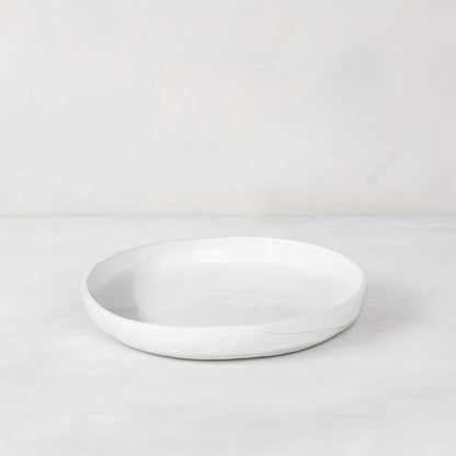 The Handmade Ceramic Platter 5316 by Montes Doggett is a round platter with an organic shape that is perfect for any food. With a raised edge that helps keep food in, this platter makes entertaining easy.