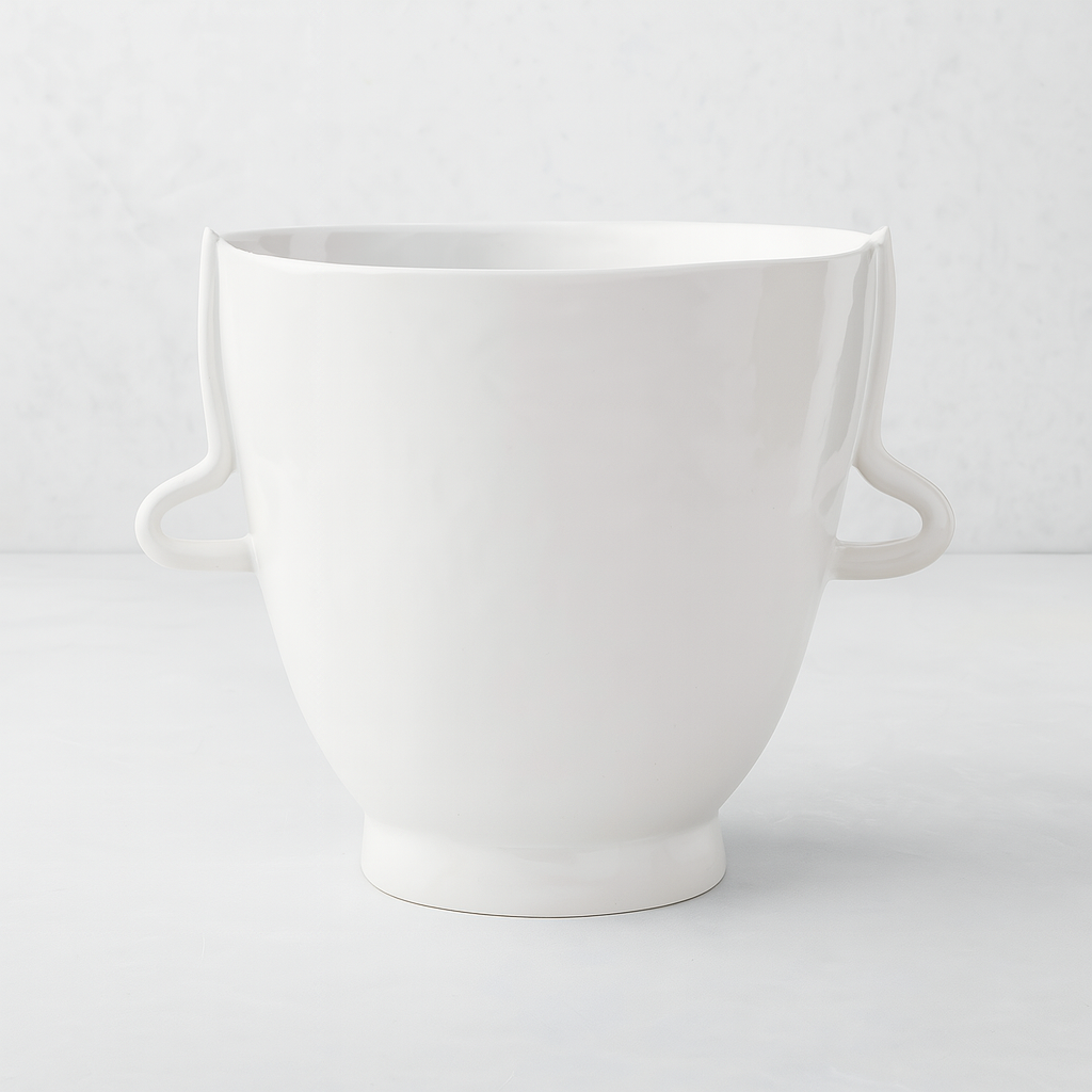 We cannot get enough of this beloved, handmade Peruvian Ceramic Large Vase Bowl 4761-L by designer Monica Porter. An organic-shaped bowl with endless uses — from displaying fruit to housing an orchid. The creamy white glazed pieces complement our signature serveware and dinnerware.