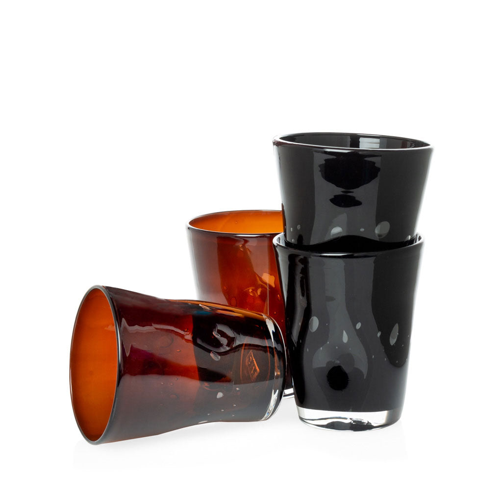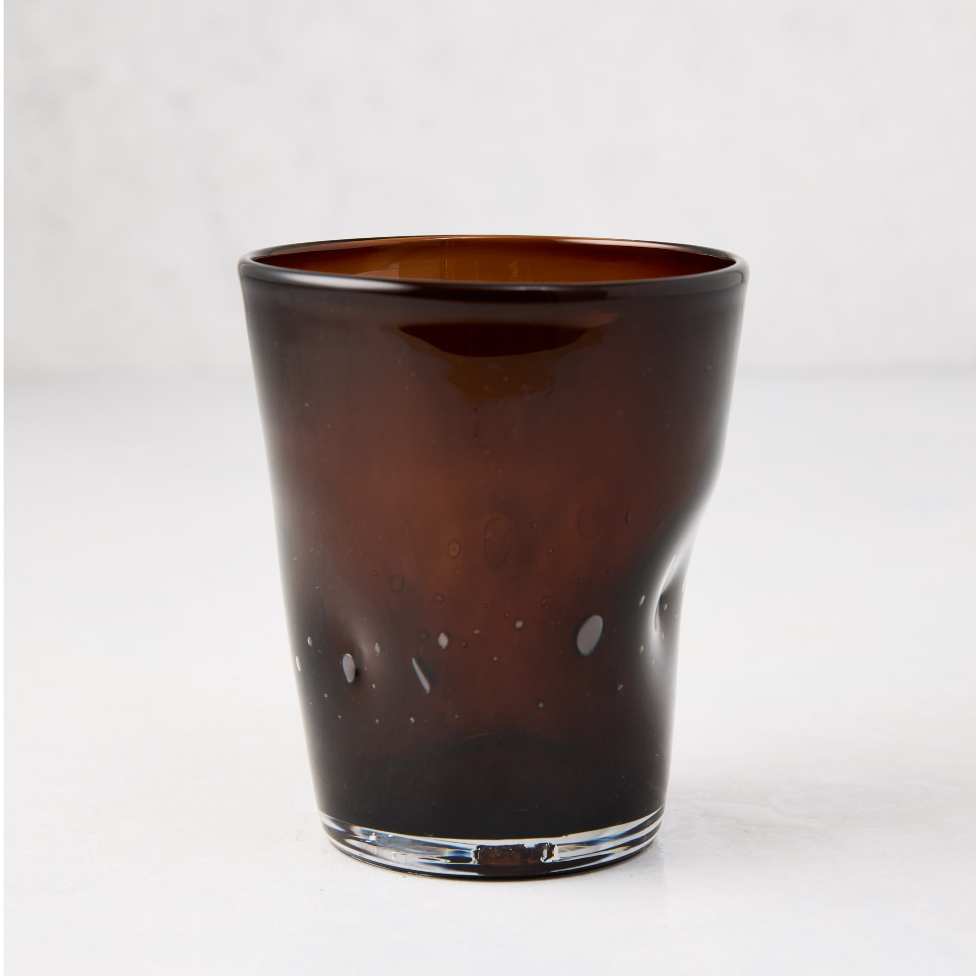Add a pop of chocolate to your tablescape with our collection of mouth-blown glassware. The vibrant-hued glass, available in 14 colors, adds a happy touch to a table set in white and is equally appealing when mixed or used as a single accent.
