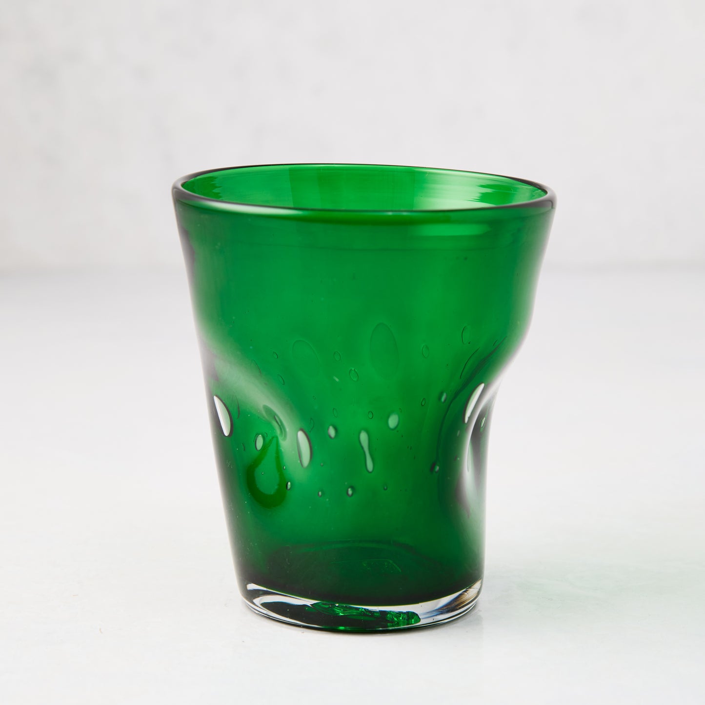 Add a pop of dark green to your tablescape with our collection of mouth-blown glassware. The vibrant-hued glass, available in 14 colors, adds a happy touch to a table set in white and is equally appealing when mixed or used as a single accent.
