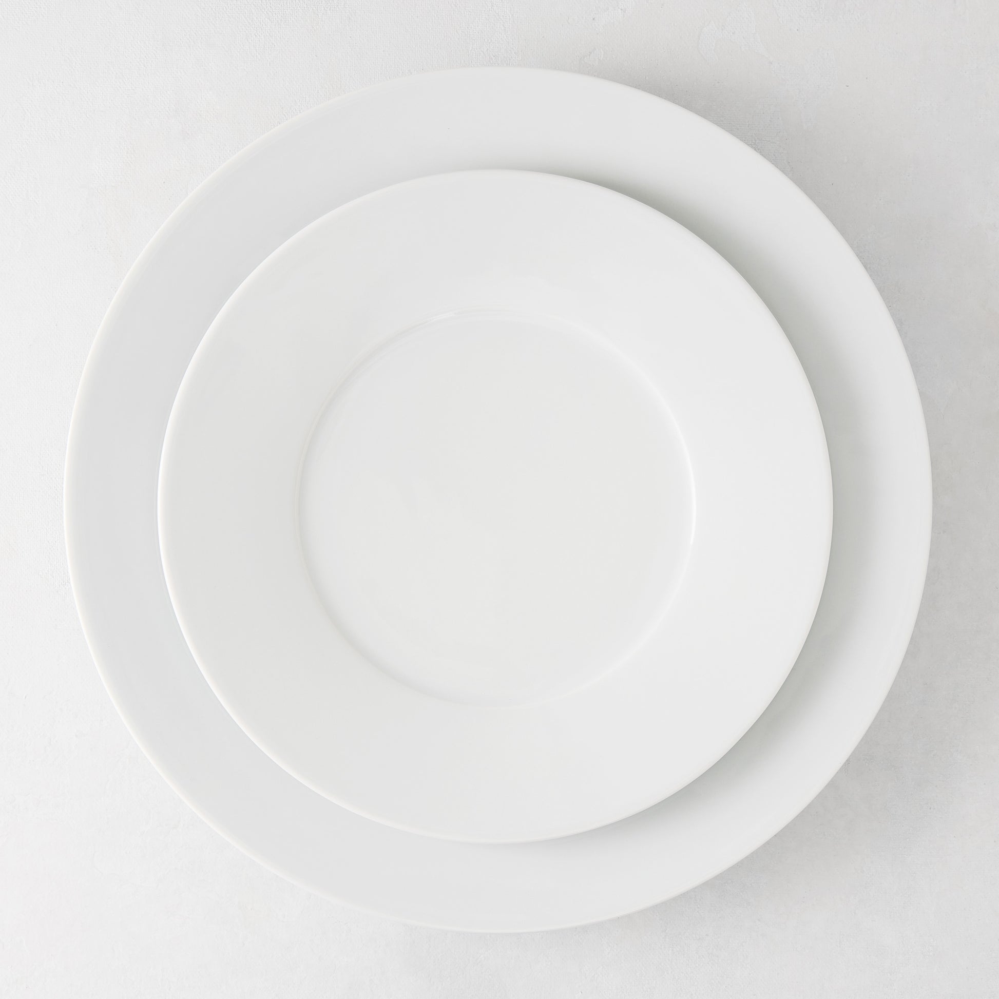 Our Classic Porcelain Dinnerware stands out with its clean, crisp lines and modern aesthetic. We've reimagined porcelain dinnerware for contemporary table settings, drawing inspiration from traditional bone china silhouettes. The Classic Porcelain Salad Plate is our go-to for snacks, salads, appetizers, and desserts. Keep a stack of extras on hand, as we promise you will reach for them at every party! Crafted in Portugal, the high firing temperature ensures long-lasting resilience.