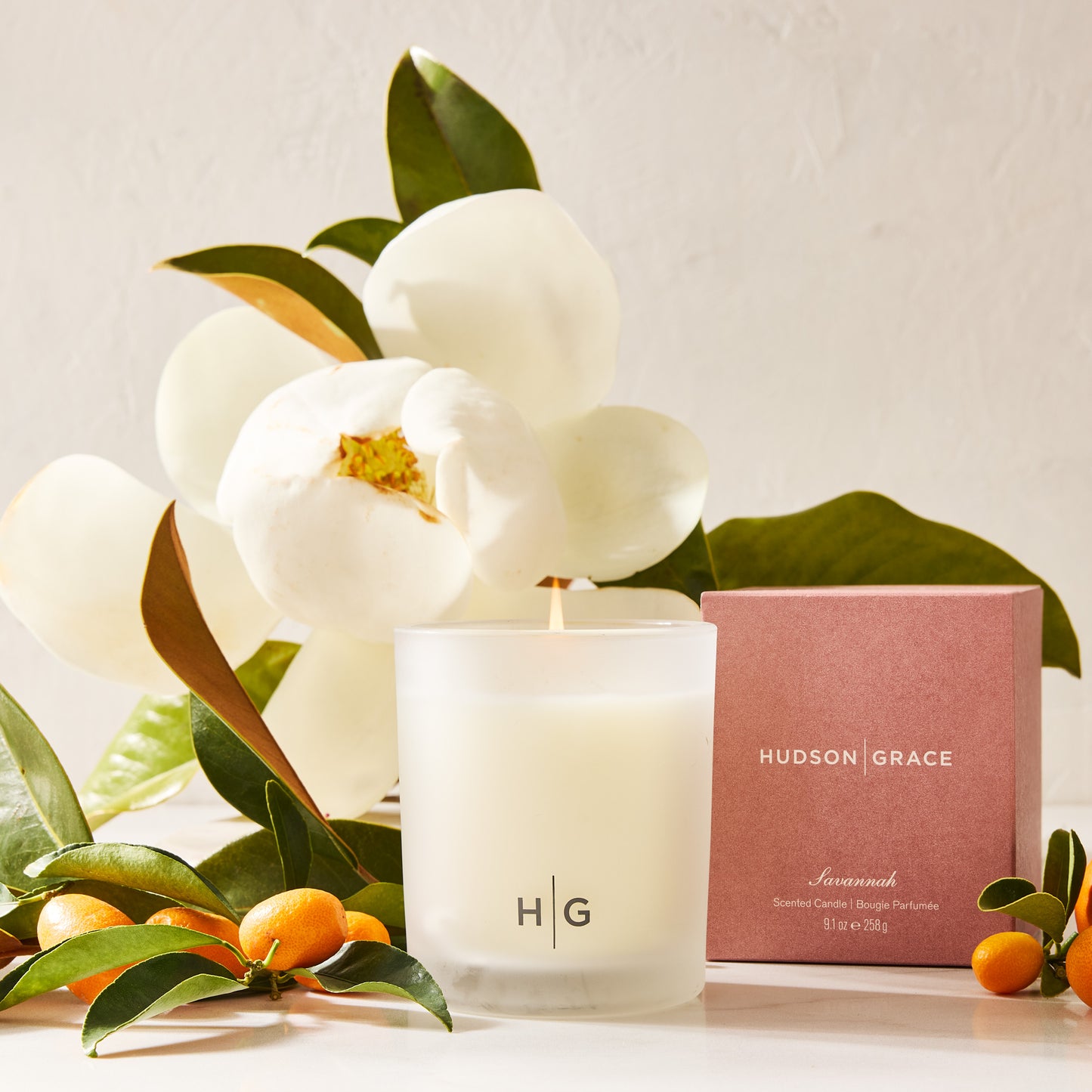 The Hudson Grace Savannah Scented Candle fills your space with true magnolia and citrus notes — a gracious and sophisticated combination. This fragrance is ideal for a guest room or breezeway, filling the room with a light and fresh floral scent that is as welcoming and wonderful as a sun-soaked Southern porch.