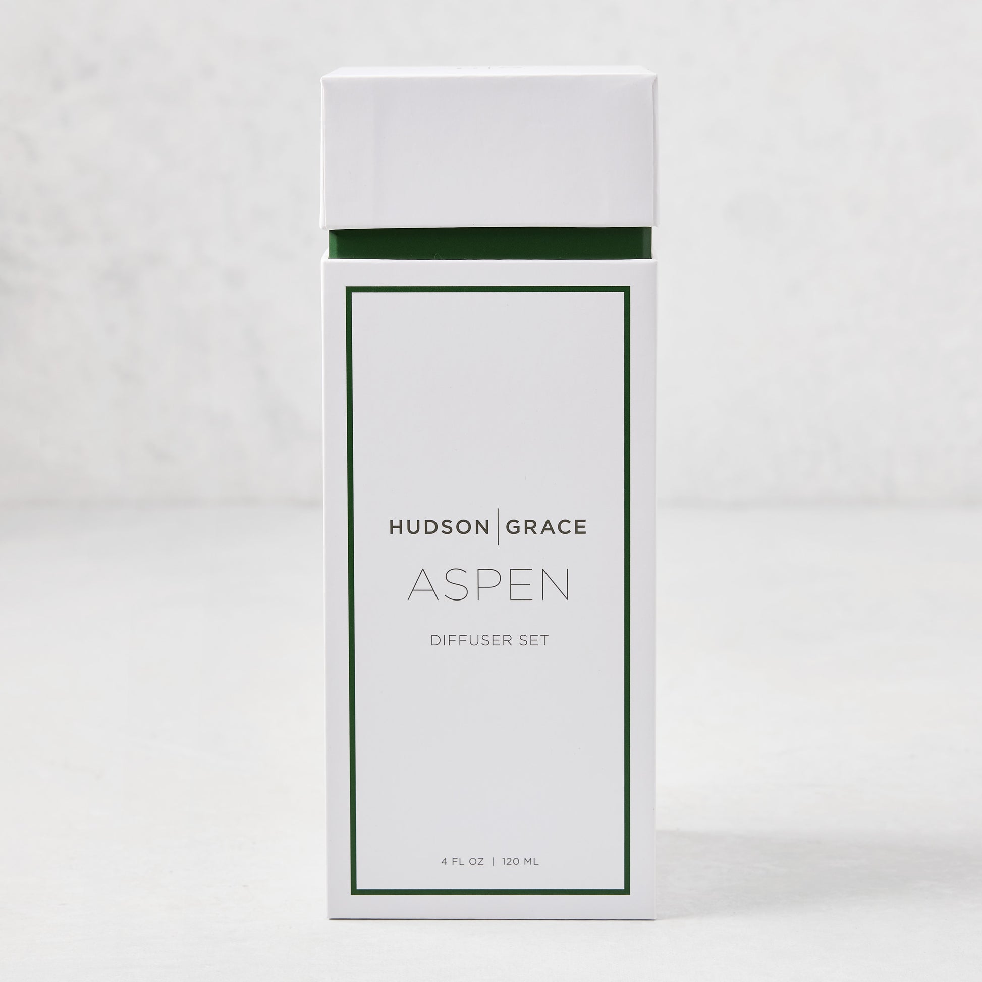 The Aspen Diffuser fills the air with cool greens and soft woods—luxurious, quiet, and seasonless. Inspired by mountain air and fireside evenings, it brings elevated warmth to the den, bedroom, or study.