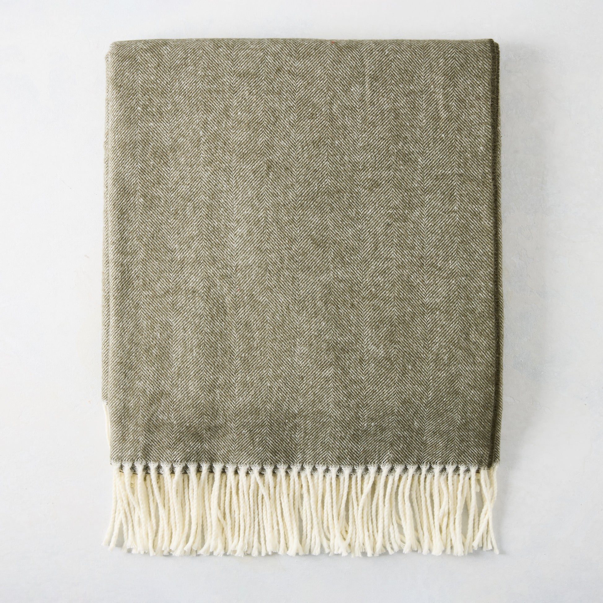 The Moss Green Italian Herringbone Throw Blanket is cashmere-soft and sophisticated with a decorative fringe. Light-weight, this versatile throw is good for all seasons, and is the perfect addition to bedrooms and living spaces. With a wide range of colors, there is a throw for every household.