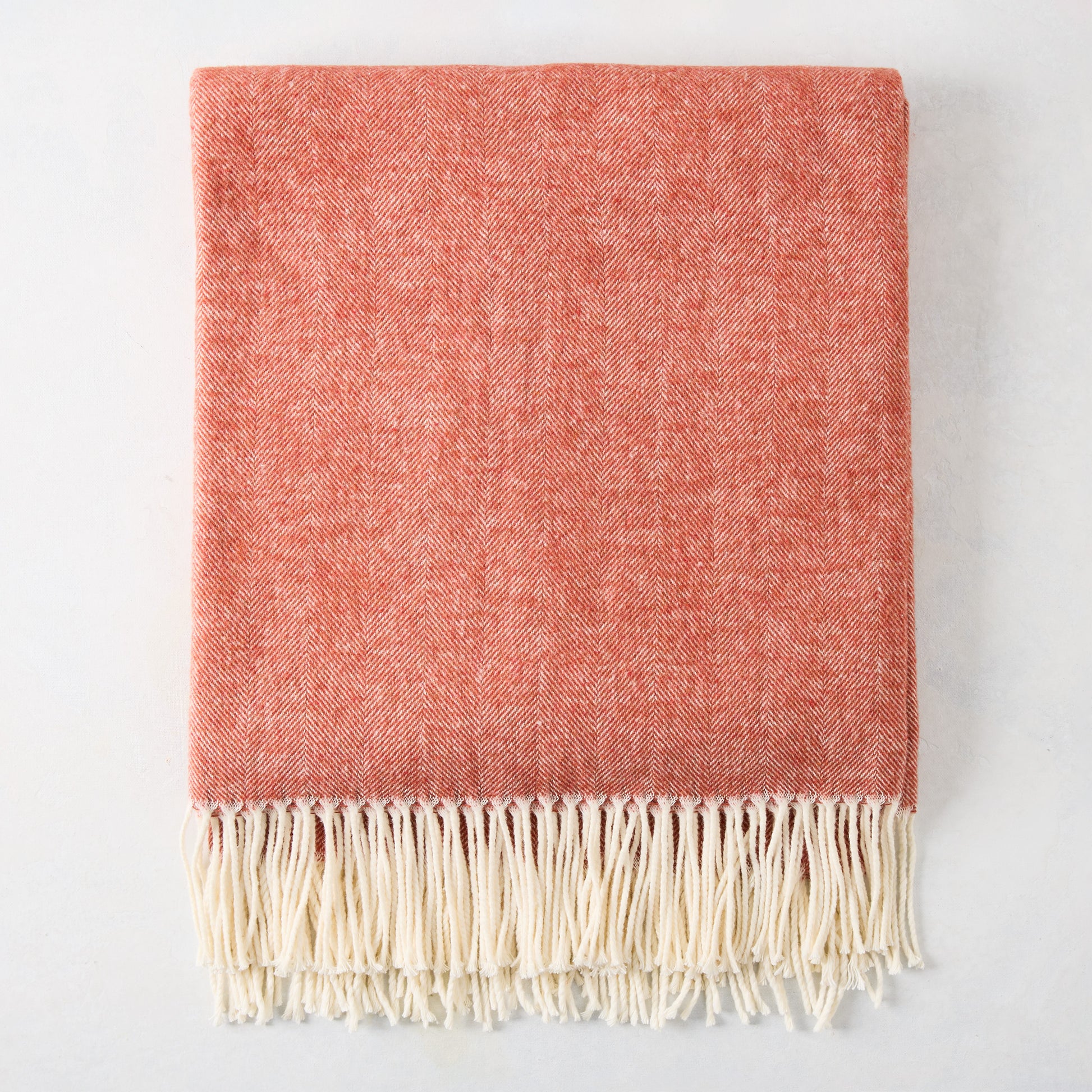 The Spice Orange Italian Herringbone Throw Blanket is cashmere-soft and sophisticated with a decorative fringe. Light-weight, this versatile throw is good for all seasons, and is the perfect addition to bedrooms and living spaces. With a wide range of colors, there is a throw for every household.