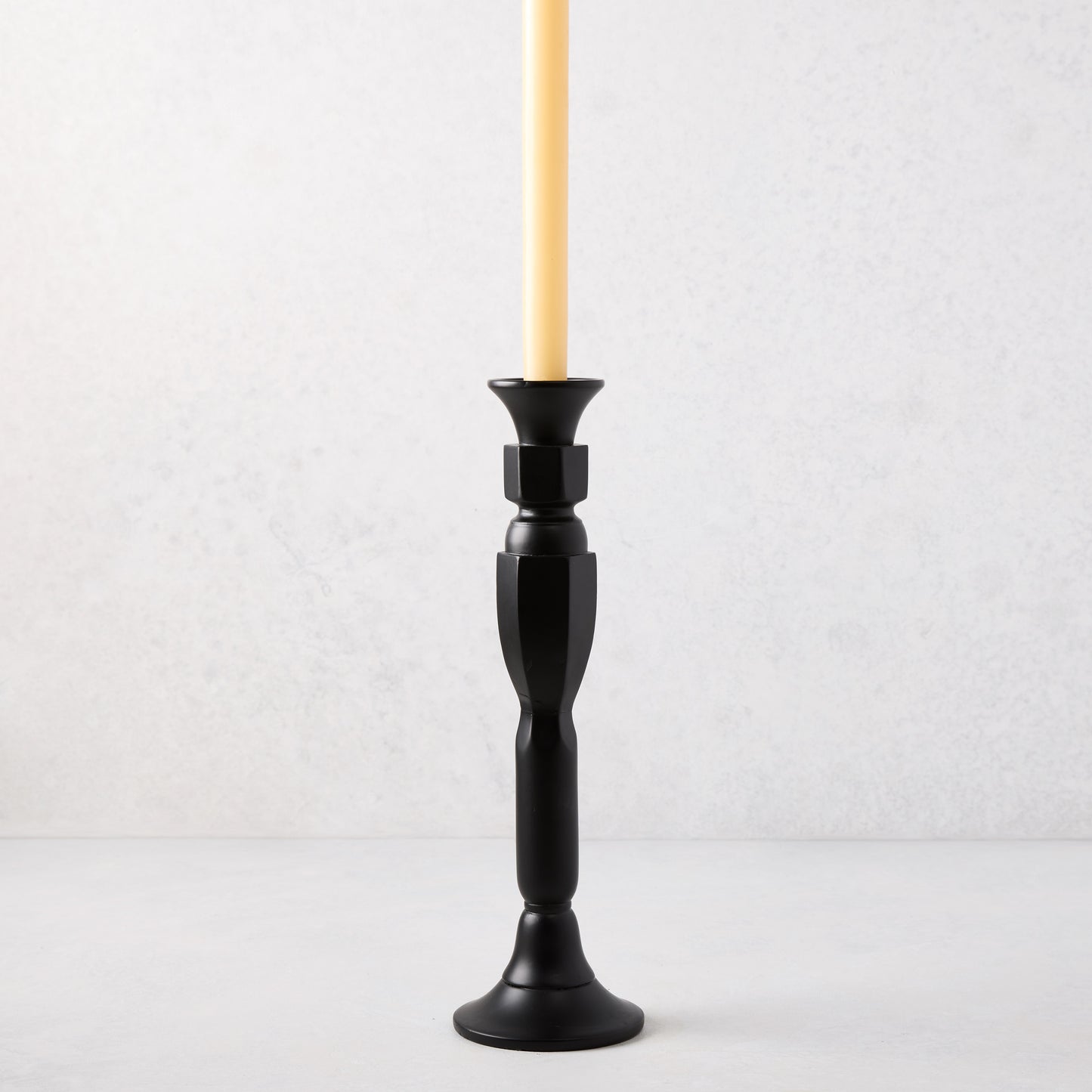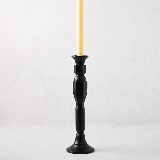 Add a flare of drama to your home with the Medium Black Georgian Candlestick. Hand-carved from beechwood and coated in a black lacquer, these candlesticks are perfect for scattering along a table or your mantle. Whether buying a matching pair, a mix of sizes, or even a mix of colors, these candlesticks will light up your home.