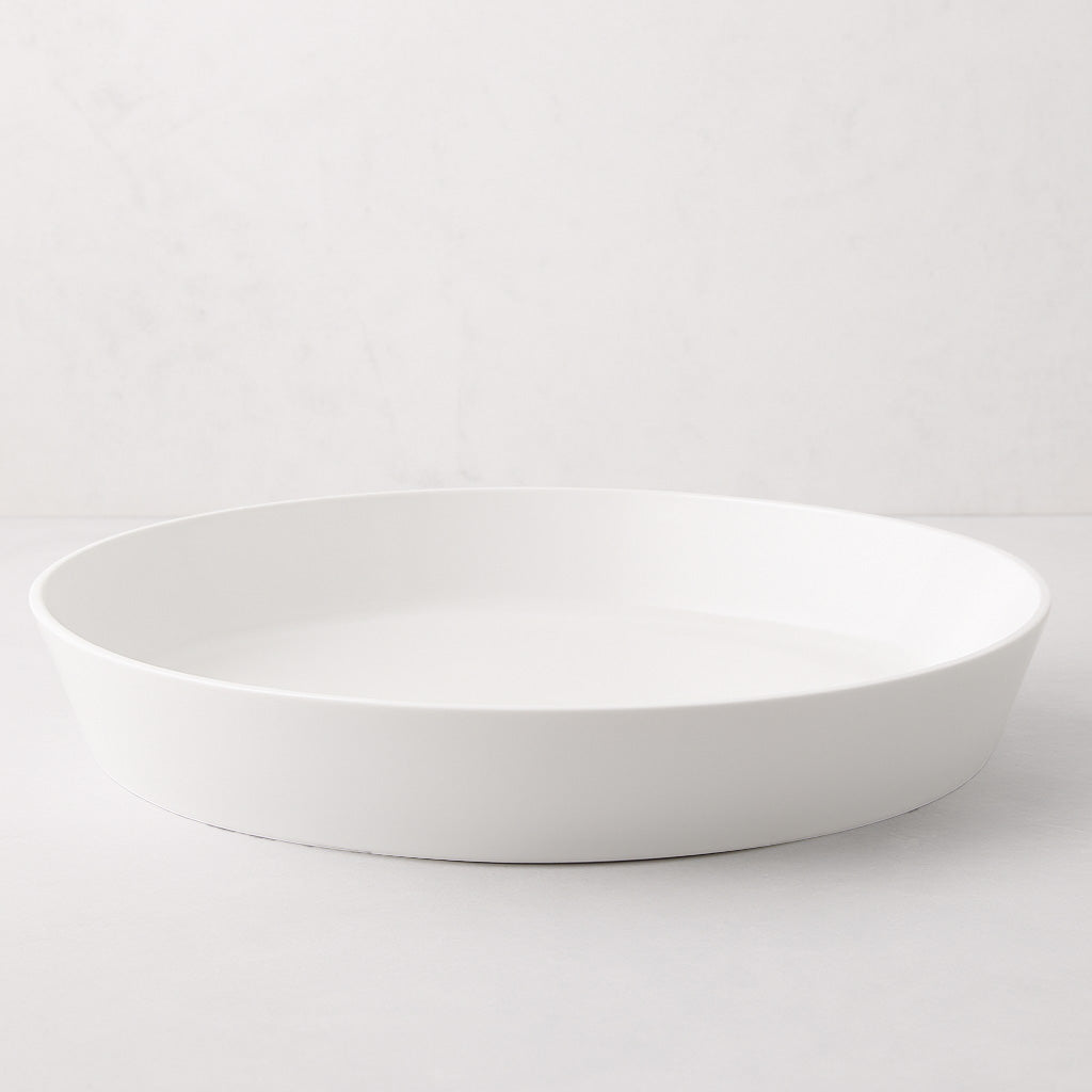 Our Luce Large Ceramic Serving Dish is a versatile tray-meets-platter with a round, modern design and thinner walls than our Piatto Riso. We love using it to serve oysters at a party, as the depth and flat surface have enough space to accommodate them without overcrowding or sliding off. We also reach for this dish when serving sliced summer fruit or when we need a holder for drinkware, cocktail napkins, and garnishes at cocktail parties. Place a few of these dishes, and the smaller size, down a table to create a cohesive look for taco nights or family-style meals!