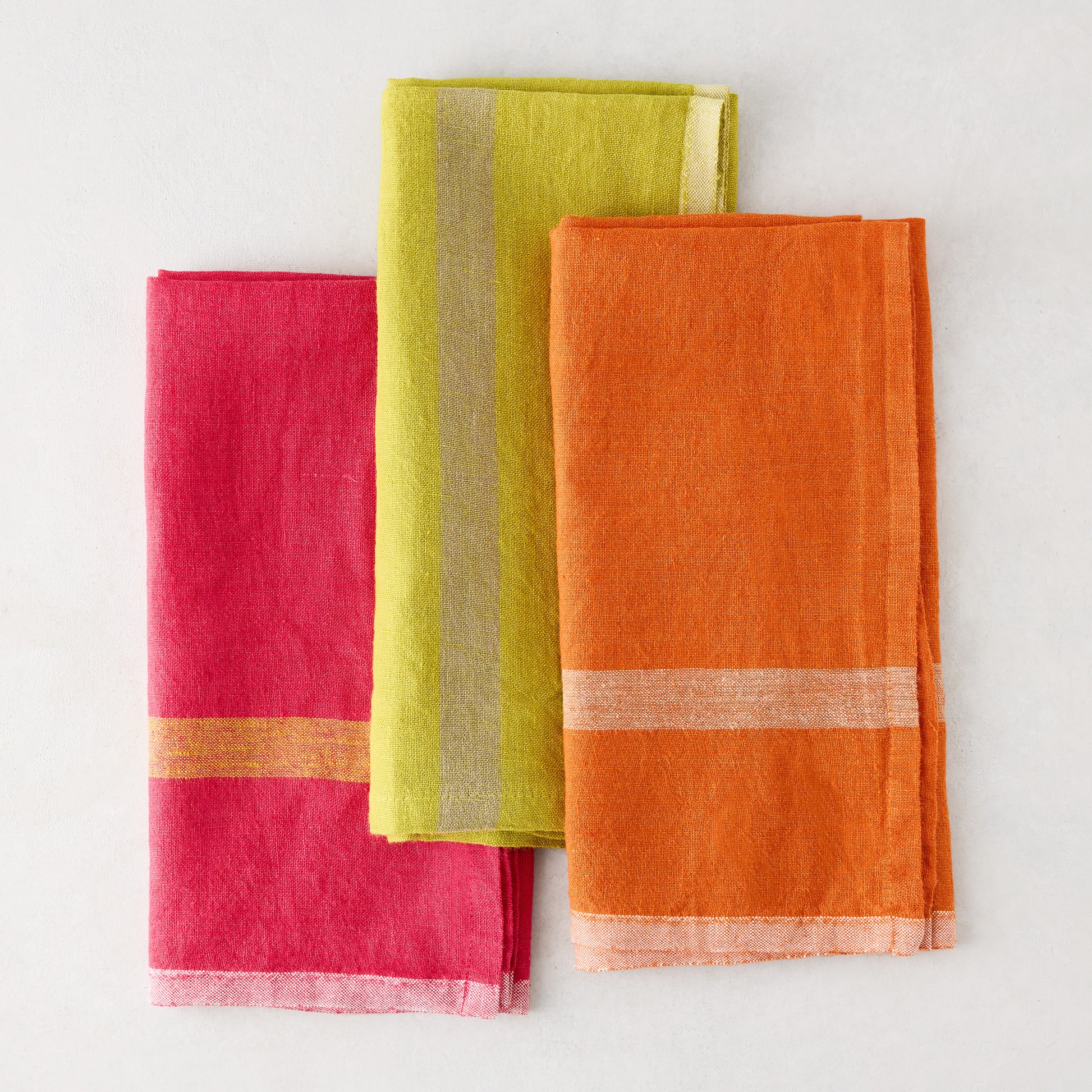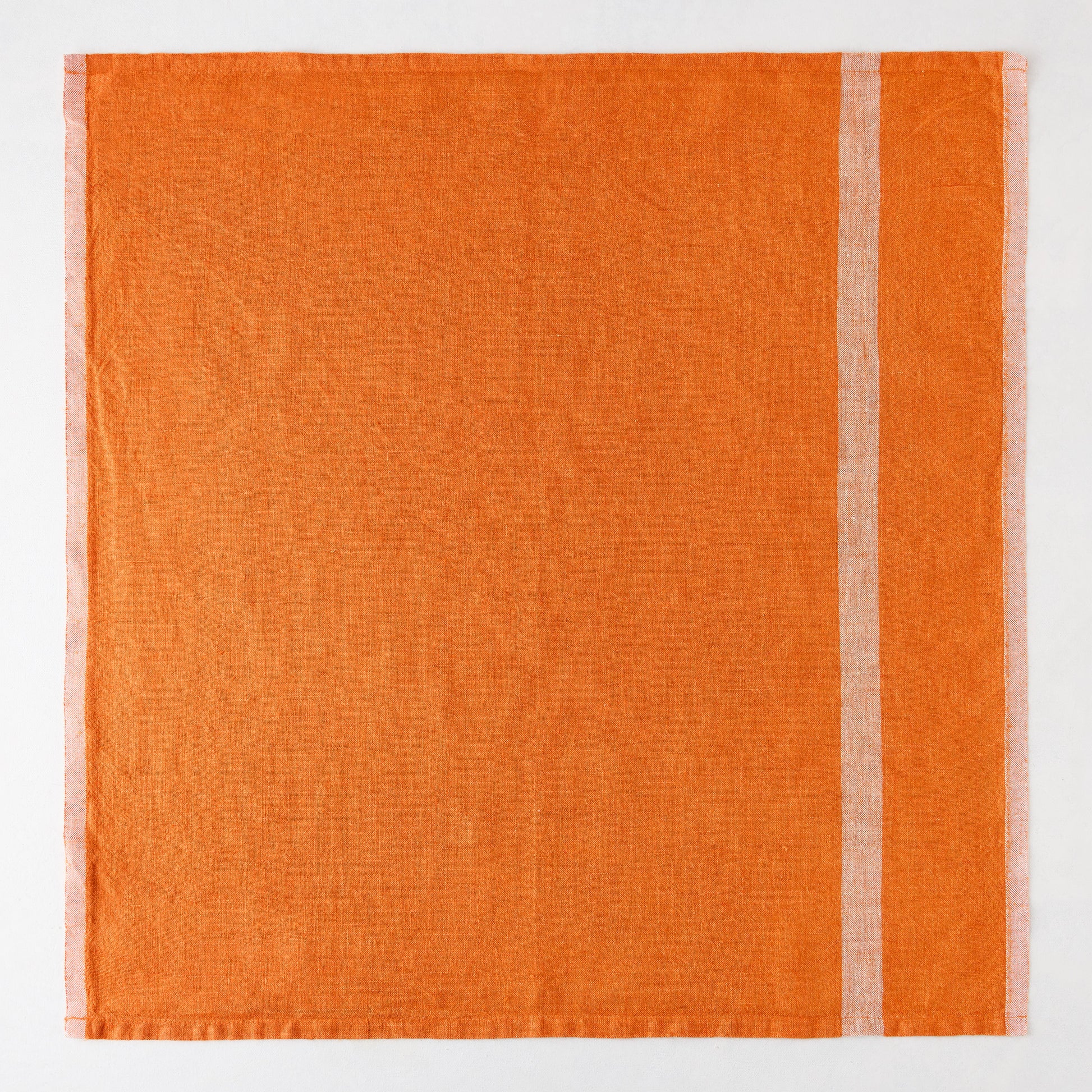 Bring color to your table with the Laundered Bright Orange Napkin. Woven from linen, this bright orange napkin is contrasted by paler stripes that add a touch of modern style that will elevate any table. Mix and match between the lime and pink napkins to create the perfect spring table.