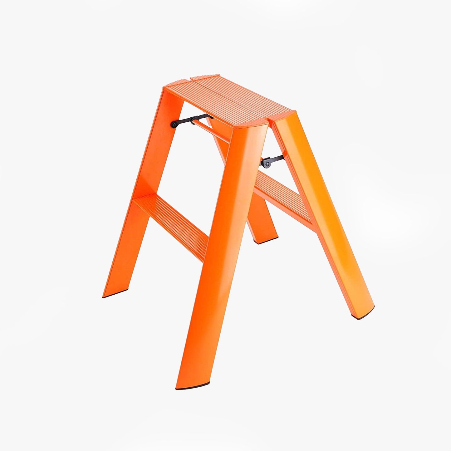 The Orange Lucano Hasegawa 2-Step ladder is functional for everyday use. It does everything a ladder is meant to do without being an eyesore, and the light construction of both aluminum and steel make it durable without being heavy. (It only weighs about 10 pounds, but supports up to 300.) The ladder is coated in a matte paint that won’t chip, features grooves for grippy resistance, and comes fully assembled upon delivery. When folded, the ladder takes up minimal space and stands upright on its own, with a slim profile that slips neatly into a closet or against a bookshelf for easy access.