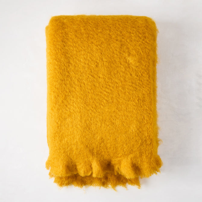 The Mantas Ezcaray Yellow Mohair Throw is a vibrant yellow mustard hue. Its quality, shine and silkiness allow it to obtain a vivid and lasting color.
