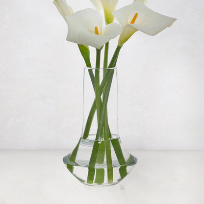 The Marco Vase combines traditional craftsmanship with a modern edge. Handcrafted in Poland from thick, mouth-blown glass, its timeless shape is perfect for showcasing sculptural blooms like lilies. Whether filled with seasonal stems or standing alone, it creates a bold, modern statement on a dining table, mantel, or entryway. A versatile piece that elevates any space with its understated elegance.
