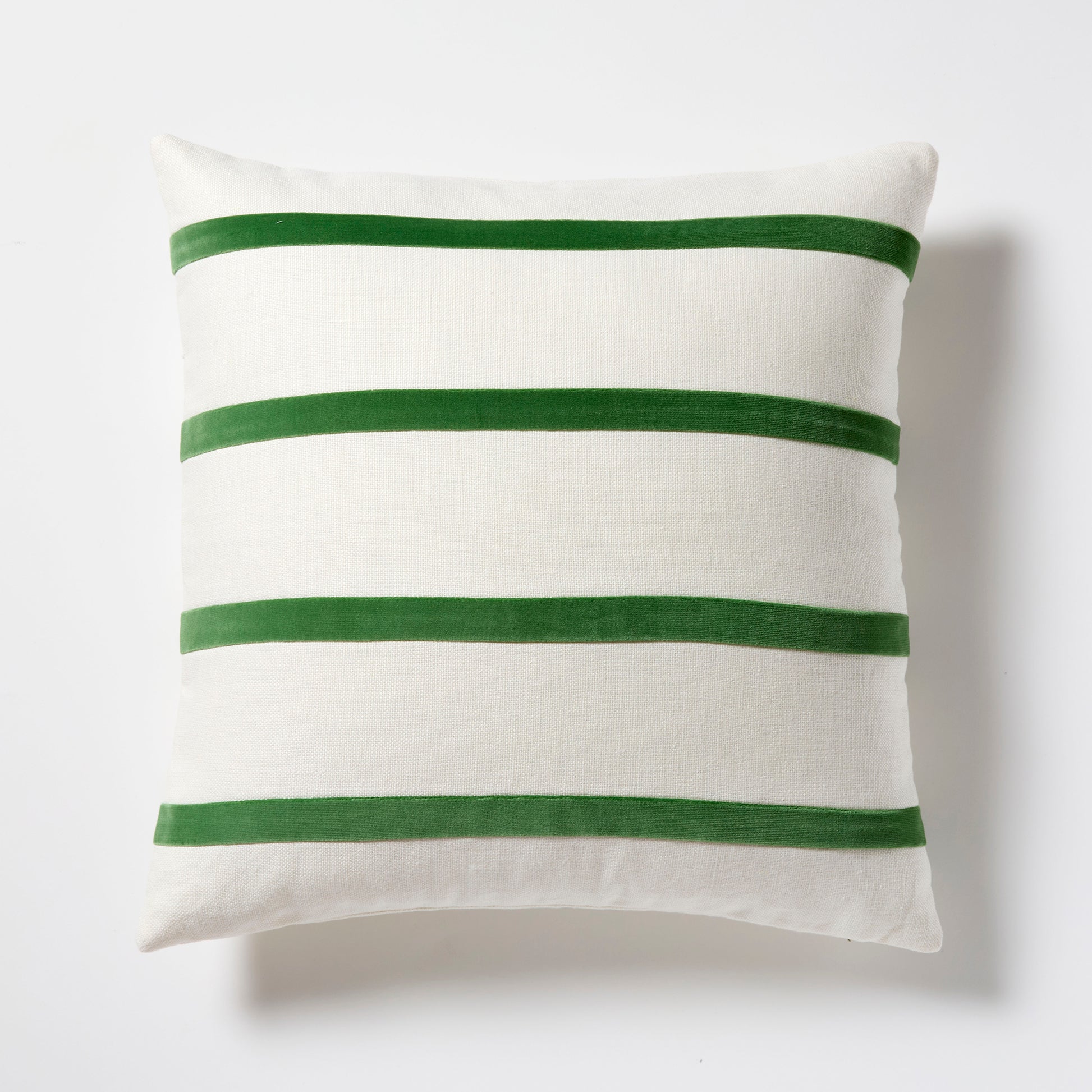 Meadow Green and Ivory Thin Velvet Stripe Pillow