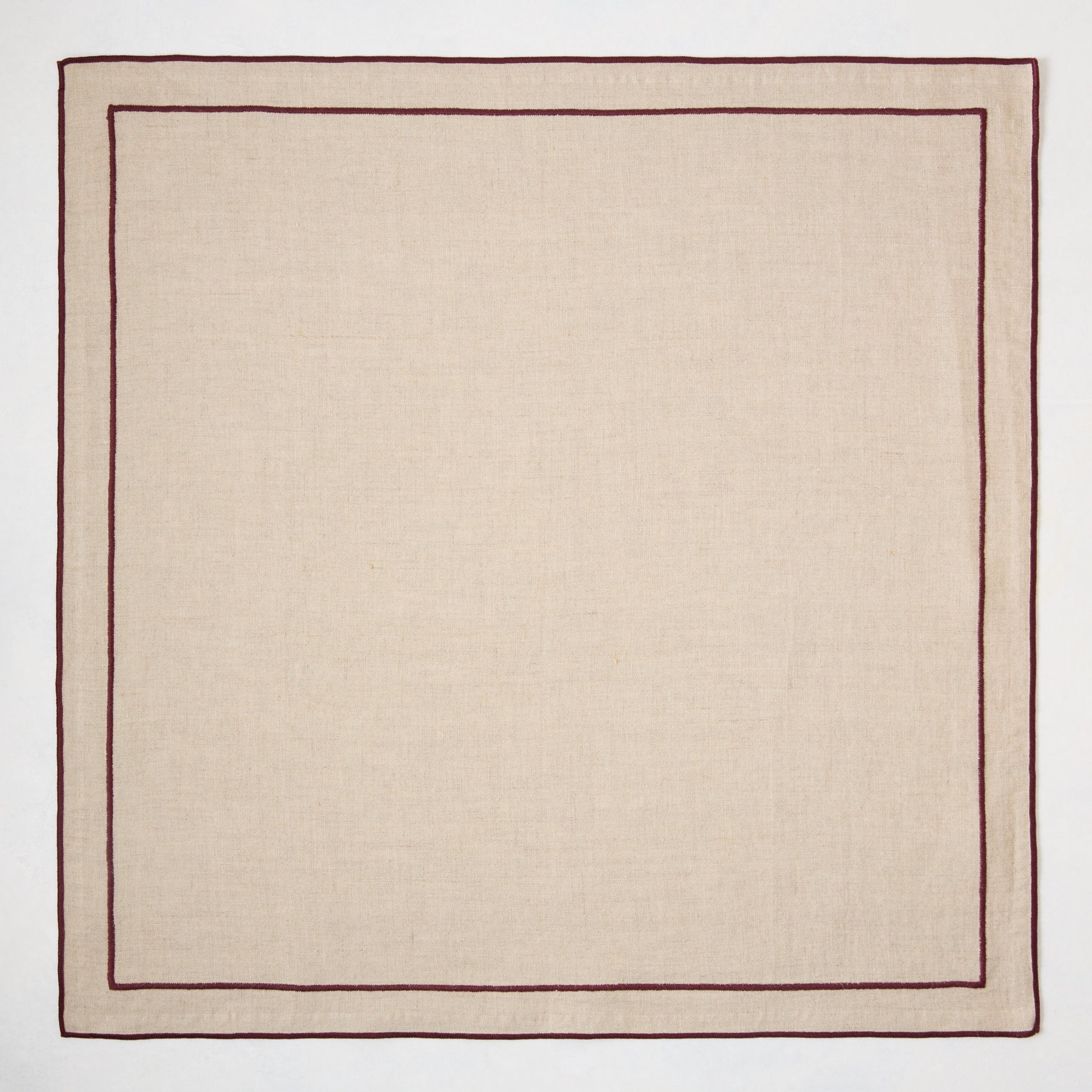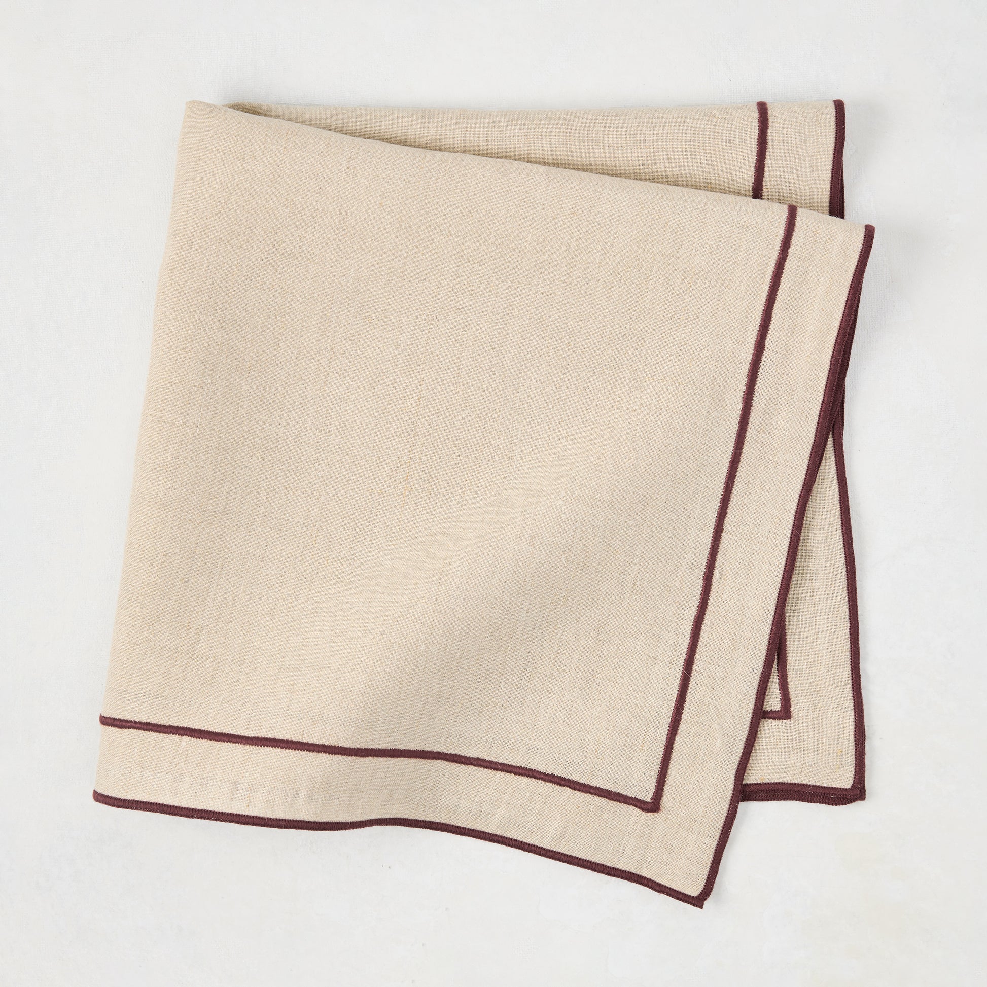 Bring subtle elegance to your table with the Dark Plum Embroidered Double Line Natural Napkin. Woven from soft cotton, the beige napkin is overlaid with dark purple embroidered borders that add the perfect pop of color. Whether dressed up or down, this napkin is the perfect elevated addition to any occasion.