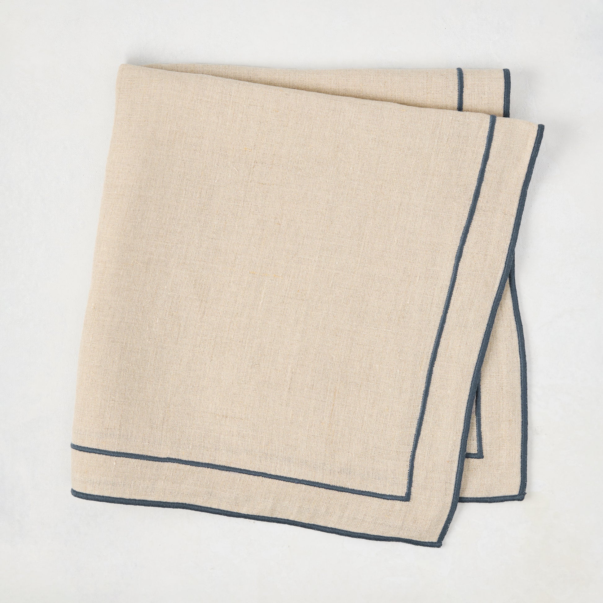 Bring subtle elegance to your table with the Indigo Blue Embroidered Double Line Natural Napkin. Woven from soft cotton, the beige napkin is overlaid with deep blue embroidered borders that add the perfect pop of color. Whether dressed up or down, this napkin is the perfect elevated addition to any occasion.