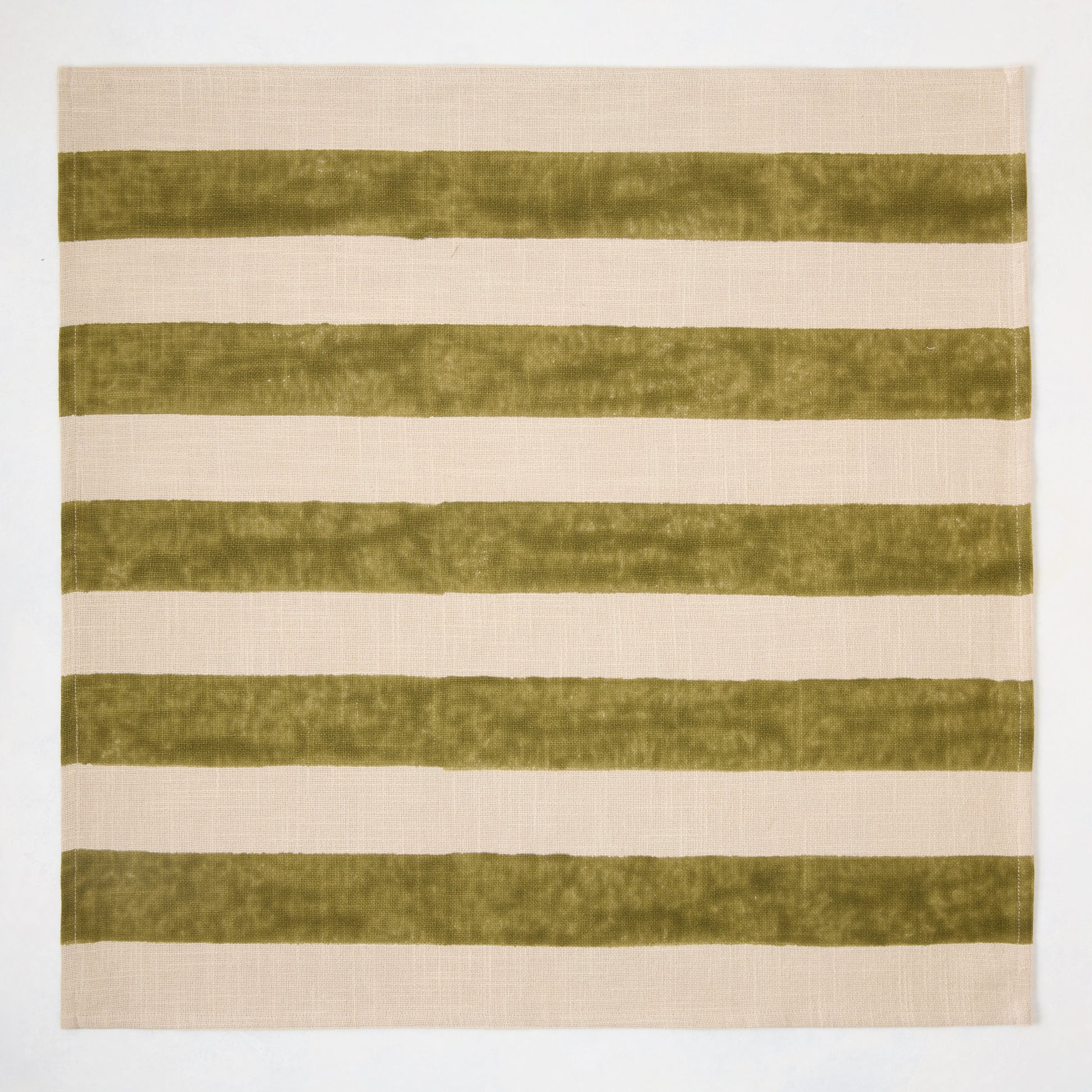 Olive Green Hampton Stripe Natural Cotton Napkin