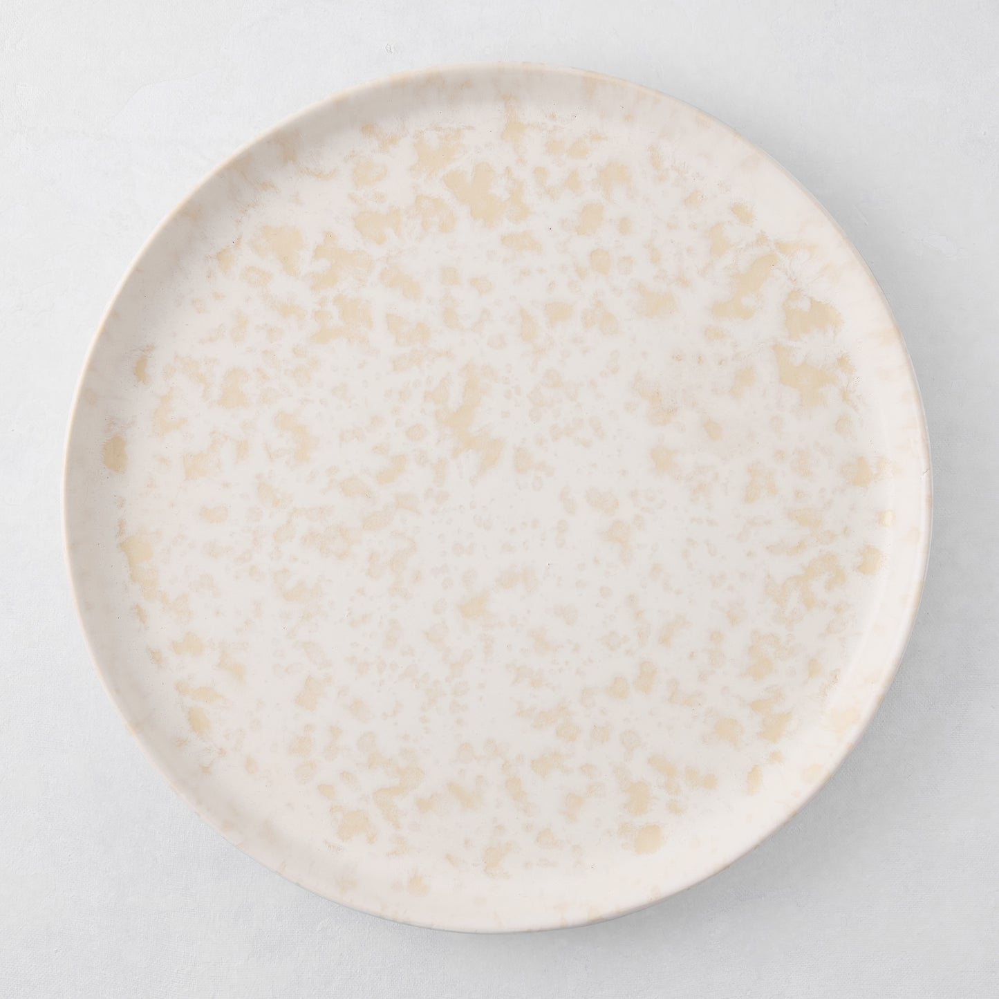 Meticulously hand-crafted and hand-painted, the Natural Nuno Splatter Dinner Plate brings texture to any table. Using Artisan techniques in Portugal, each plate features a unique splatter of beige spots overlaying a pale cream base. Crafted in stoneware, this dinner plate is sturdy, understated, and perfect for everyday use.