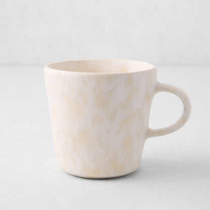 Meticulously hand-crafted and hand-painted, the Natural Nuno Splatter Mug brings texture to any table. Using Artisan techniques in Portugal, each plate features a unique splatter of beige spots overlaying a pale cream base. Crafted in stoneware, this mug is sturdy, understated, and perfect for everyday use.