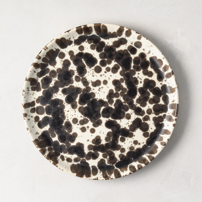 Inspired by the historic splatterware technique, known for its spontaneous and expressive paint patterns, we’ve updated this classic art form with a fresh colorway that complements today’s aesthetic. The dark brown splashes against a creamy ivory background create a dynamic and inviting contrast, merging the old with the new.