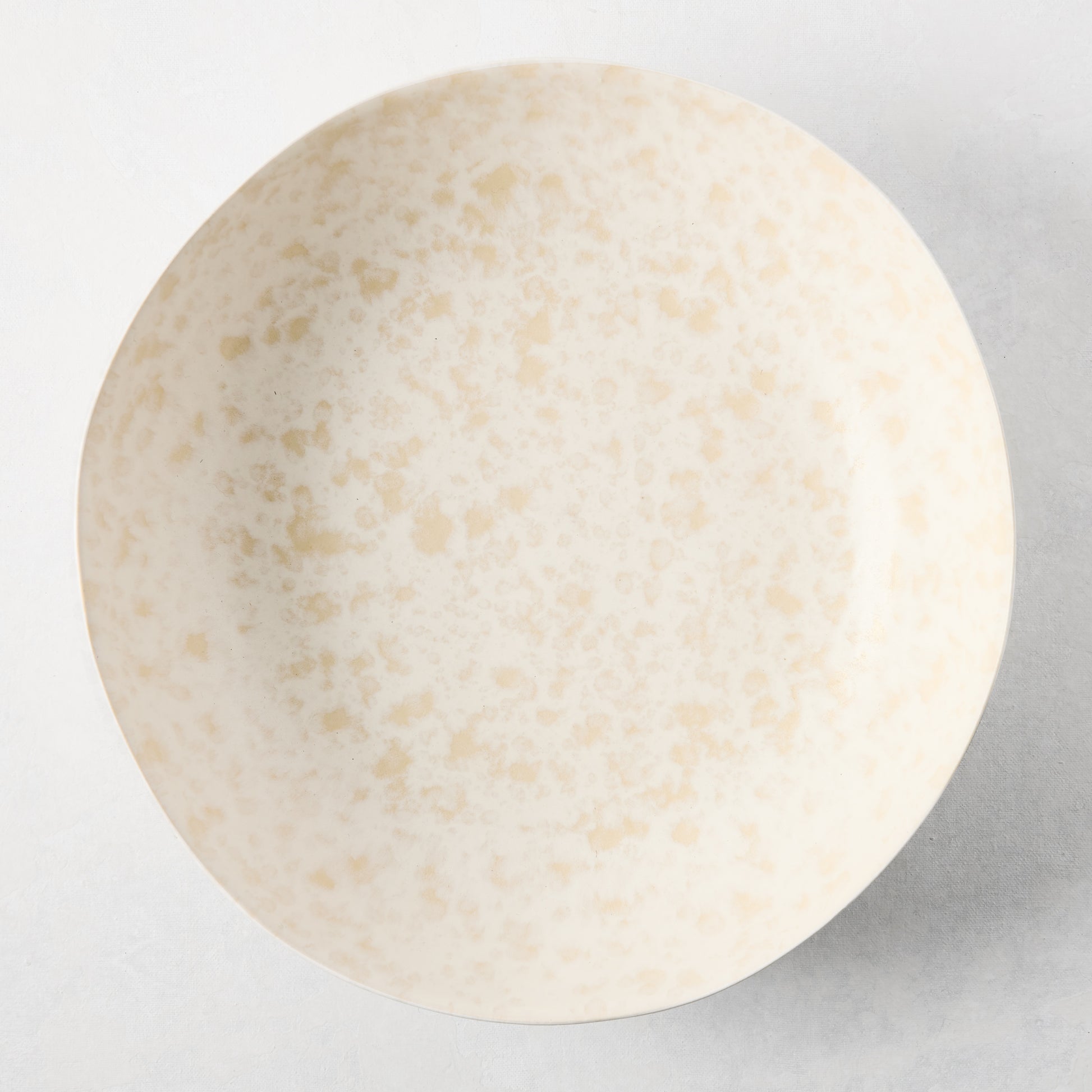 Meticulously hand-crafted and hand-painted, the Natural Nuno Splatter Stoneware Serve Bowl makes entertaining easy. Using artisan techniques in Portugal, each bowl features a unique splatter of beige spots overlaying a pale cream base. With a sleek coupe shape, this bowl is perfect for serving salad or pasta.