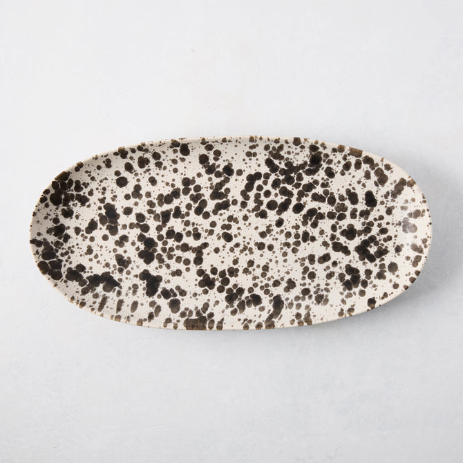 Meticulously hand-crafted and hand-painted, the Nuno Splatter Serving Platter makes entertaining easy. Using Artisan techniques in Portugal, each platter features a unique splatter of brown spots overlaying a pale cream base. Crafted in stoneware, this platter is sturdy, understated, and perfect for all your serving needs.