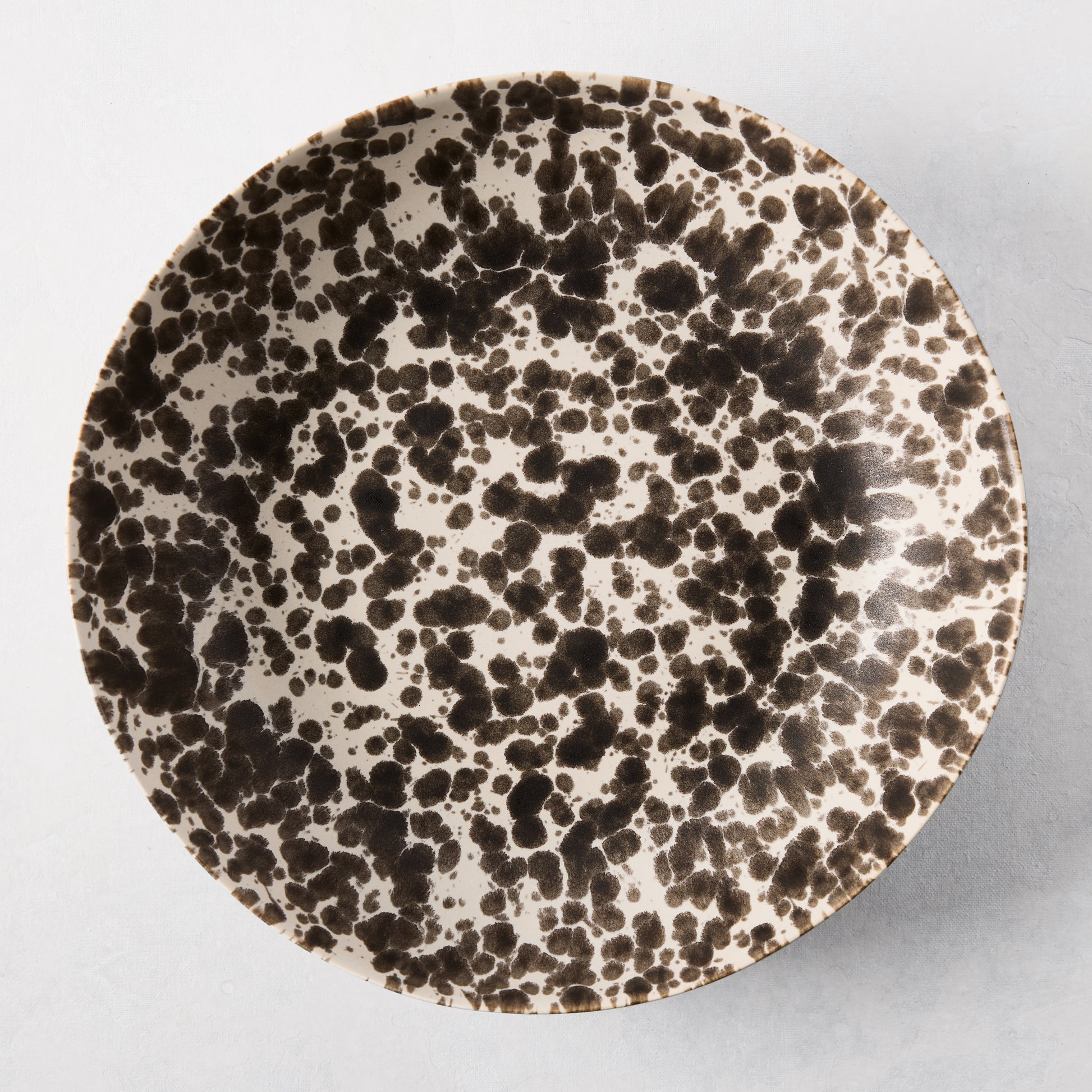 Meticulously hand-crafted and hand-painted, the Nuno Splatter Serve Bowl makes entertaining easy. Using artisan techniques in Portugal, each bowl features a unique splatter of brown spots overlaying a pale cream base. Crafted in stoneware, this platter is sturdy, understated, and perfect for all your serving needs.