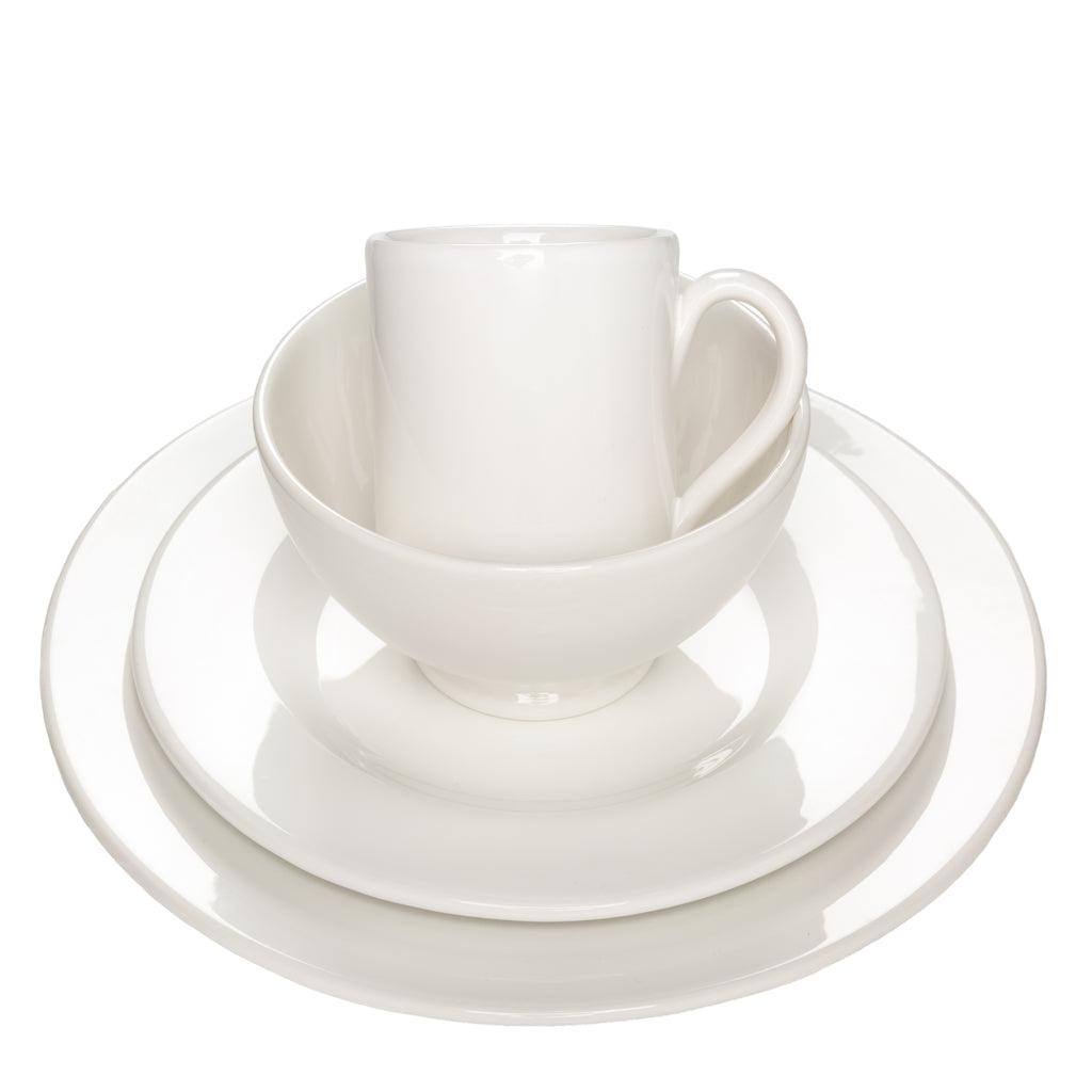 In Italy, our ceramic dinnerware is crafted using heritage techniques passed down through generations. Skilled artisans begin with locally sourced clay, meticulously shaping it into our plates, bowls, mugs, and serveware. After shaping, the ceramics are left to dry before firing in kilns at high temperatures. Finally, our pieces are glazed with our signature creamy white glaze, imparting a modern touch to traditional shapes. The organic appeal of ceramic, in texture and appearance, fosters a sense of warmth and comfort, making guests and diners want to linger, laugh, and enjoy a meal (How European is that!)