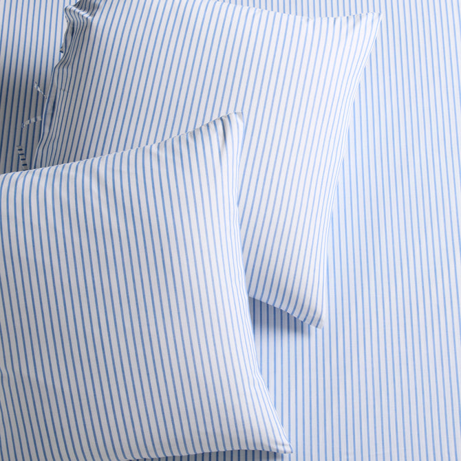Your favorite shirt - now for your bed. The perfect softness, an unexplainable comfort you never want to leave. The Blue Oxford Thin Stripe Euro Sham Set features a thin blue stripe pattern with a light, breathable finish that makes you want to sleep in longer. Made from 100% organic cotton in Portugal, this euro sham set makes for a well-dressed bed.