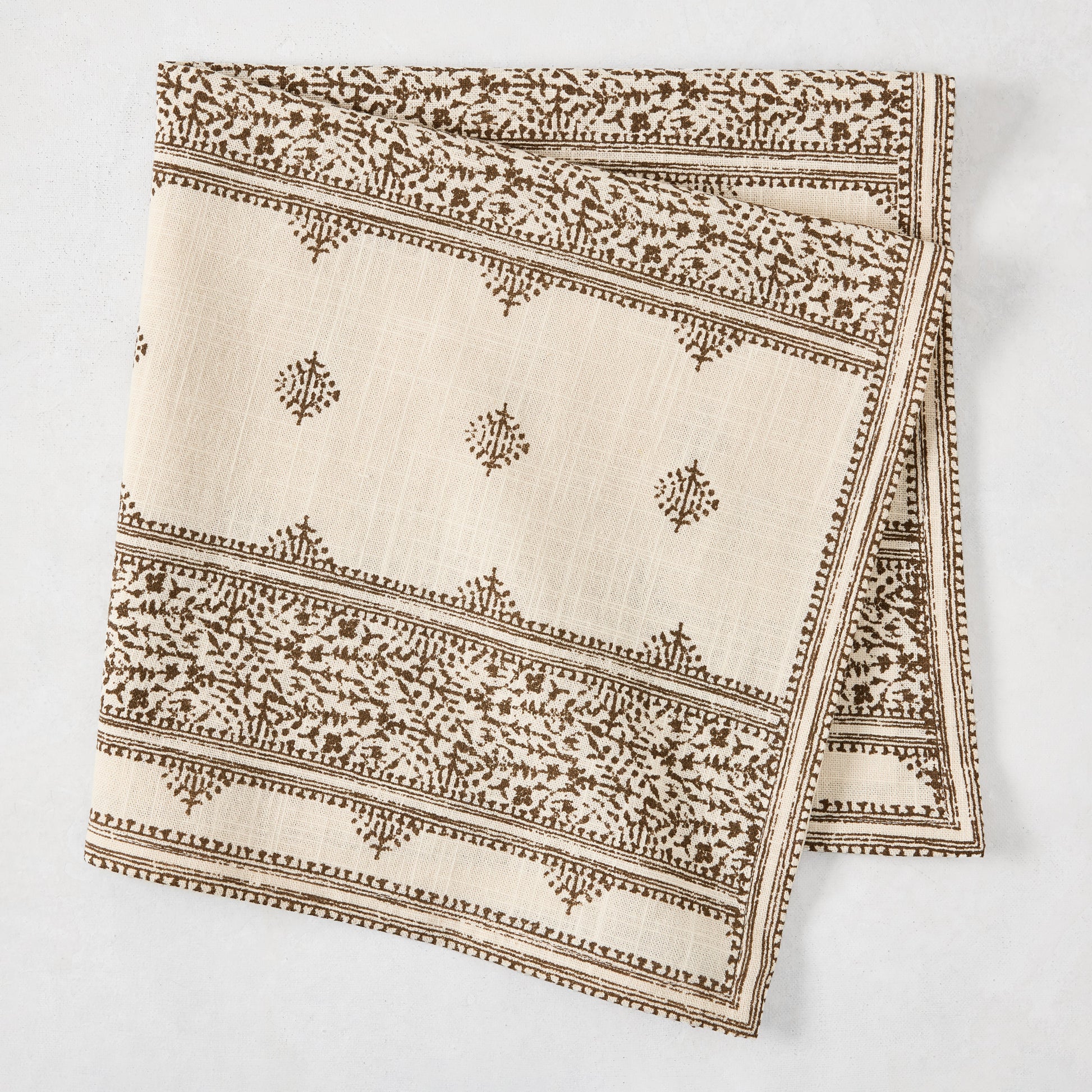 Details with personality—that’s the charm of the Fez Printed Napkin in Chocolate Brown. A brown striped motif inspired by vintage embroidery printed on a natural, ivory toned base, this brings timeless style to the table. Made from 100% cotton slub, it offers a relaxed, textured feel with lasting durability. This striped napkin will layer perfectly with other linens in the PD x HG collection, or with our signature HG Linens.