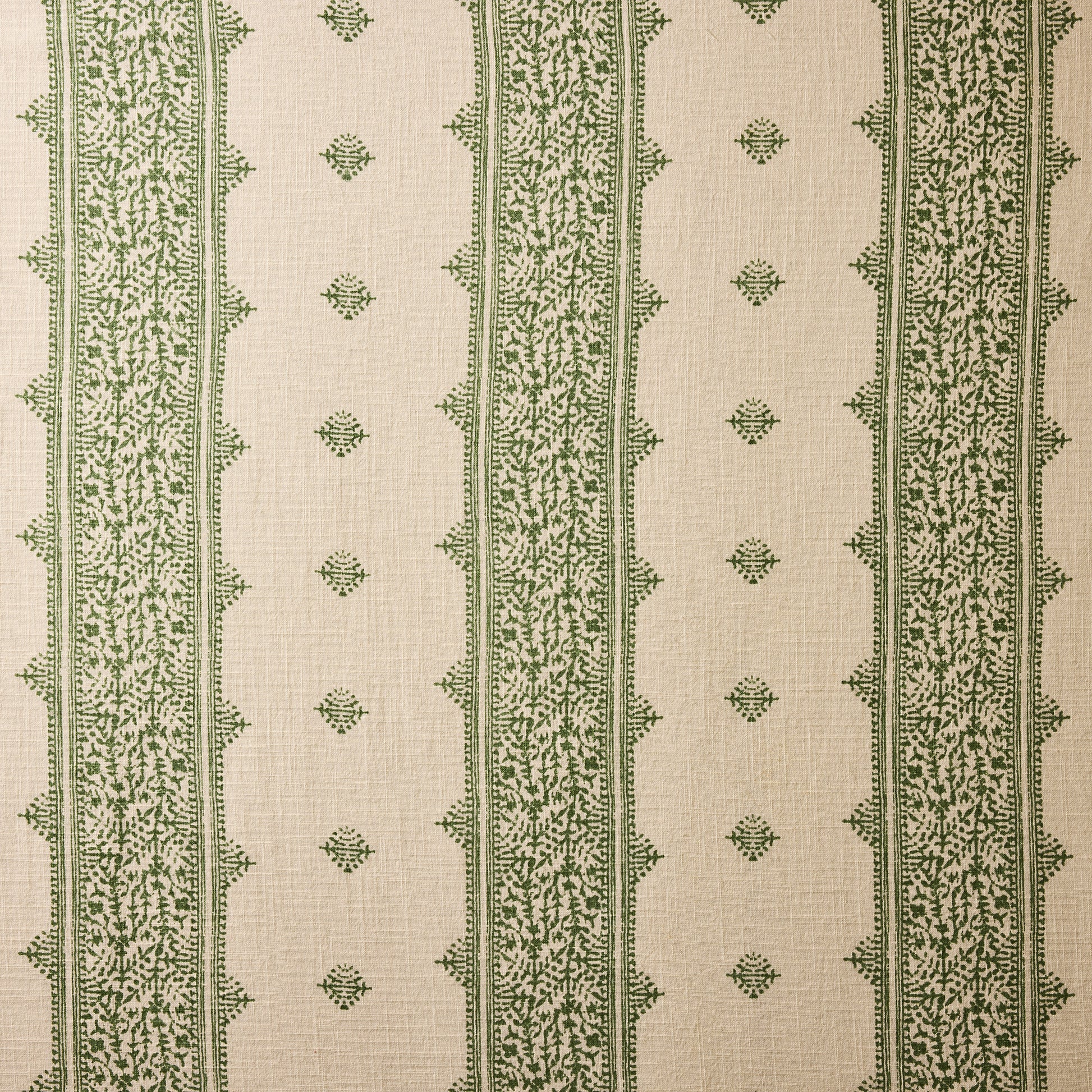 Peter Dunham + Hudson Grace Olive Green Fez Stripe Printed Natural Tablecloth