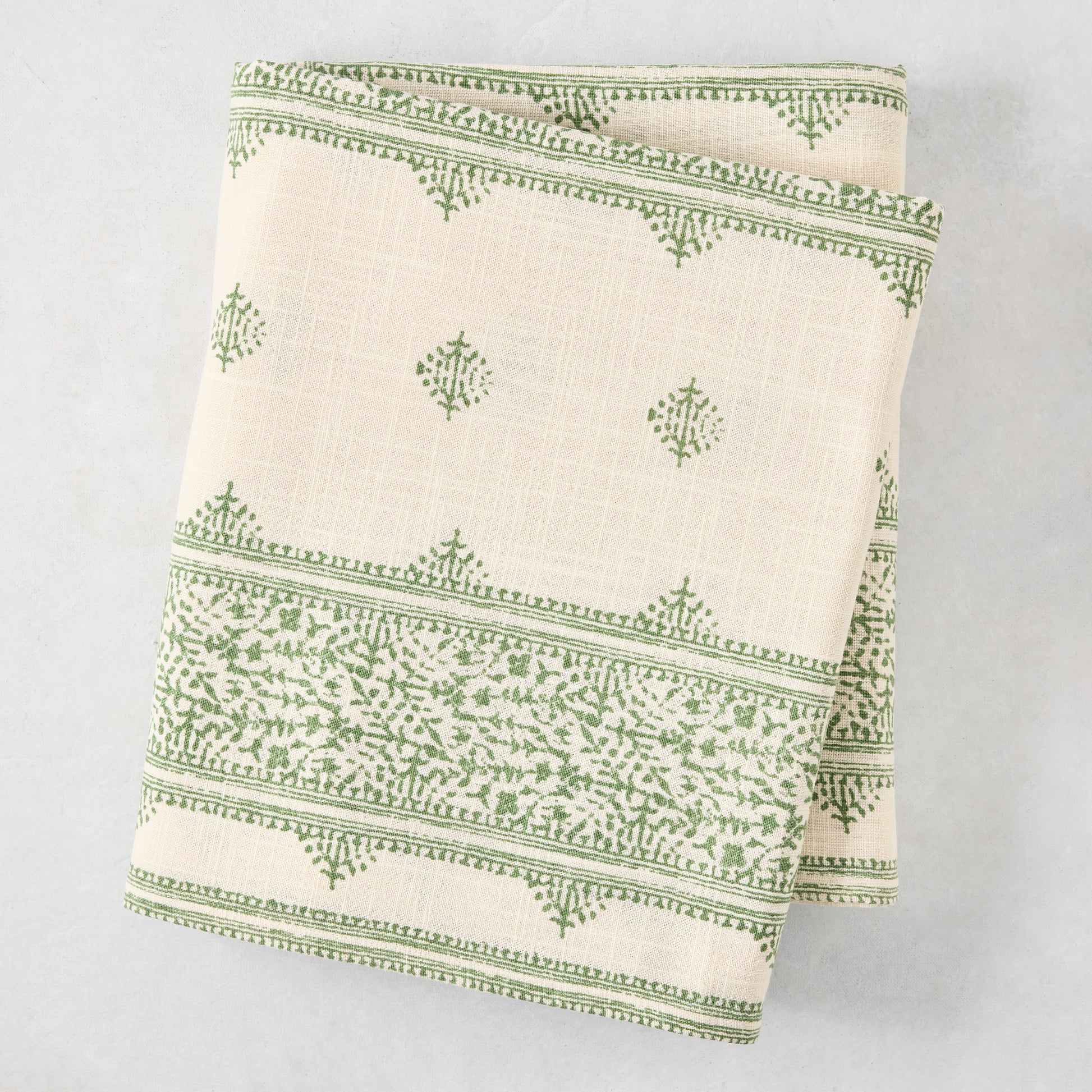 Details with personality—that’s the charm of the Fez Printed Tablecloth in Olive Green. A green striped motif inspired by vintage embroidery printed on a natural, ivory toned base, this brings timeless style to the table. Made from 100% cotton slub, it offers a relaxed, textured feel with lasting durability. This tablecloth will layer perfectly with other linens in the PD x HG collection, or with our signature HG Linens.