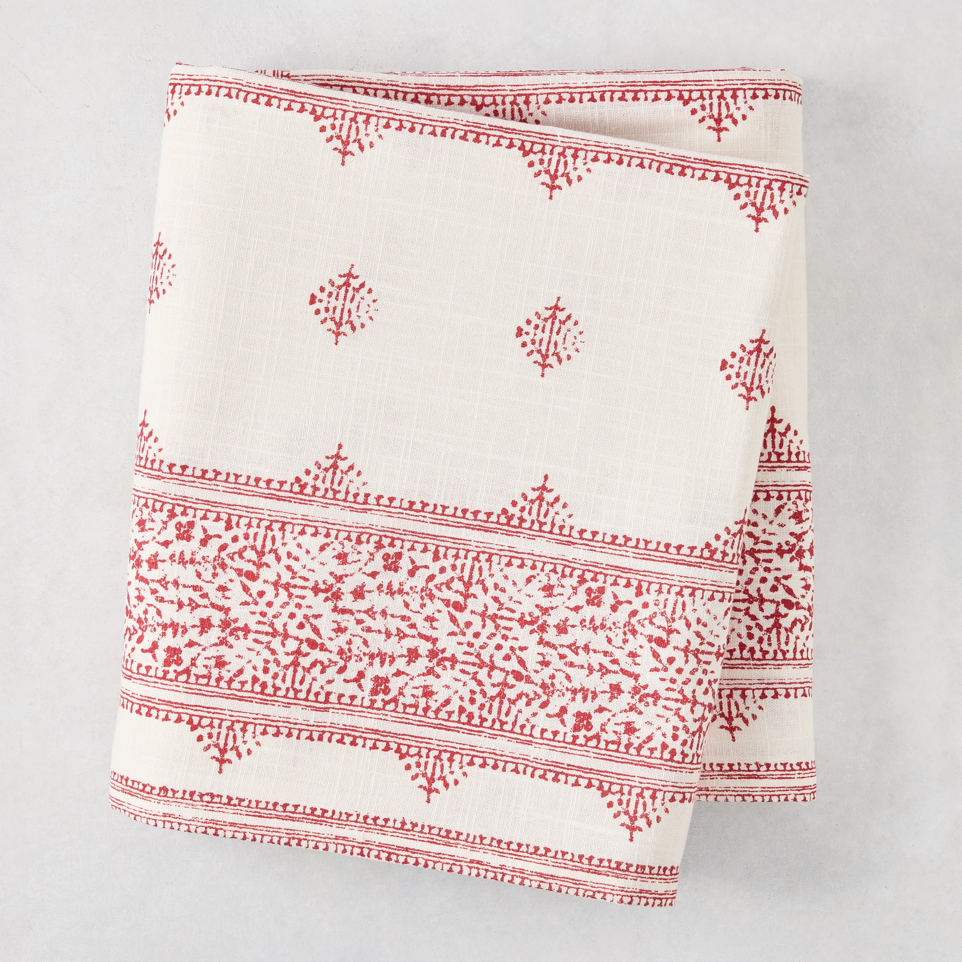 Details with personality—that’s the charm of the Fez Printed Tablecloth in Red. A red striped motif inspired by vintage embroidery printed on a white base, this brings timeless style to the table. Made from 100% cotton slub, it offers a relaxed, textured feel with lasting durability. This tablecloth will layer perfectly with other linens in the PD x HG collection, or with our signature HG Linens.