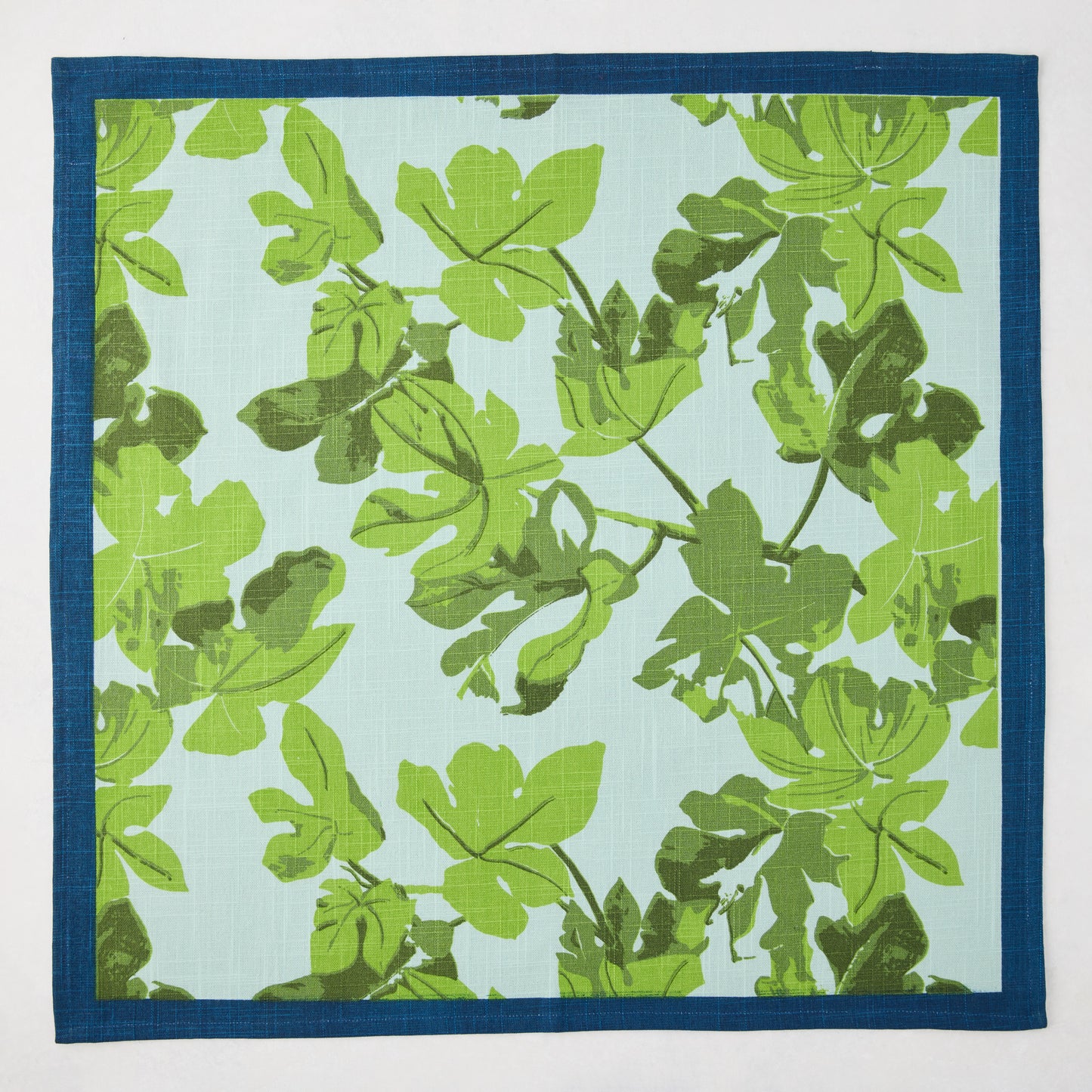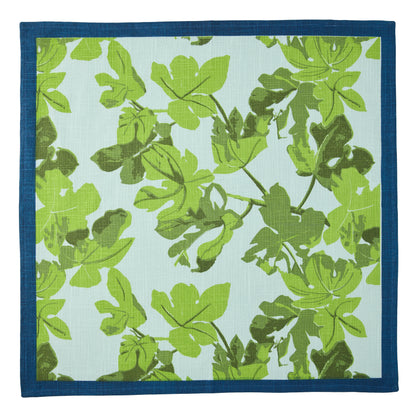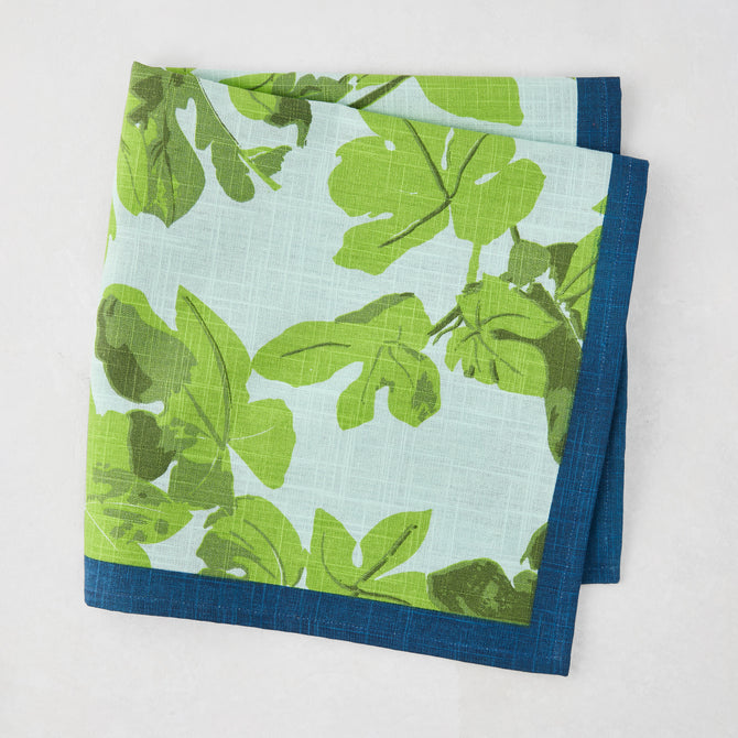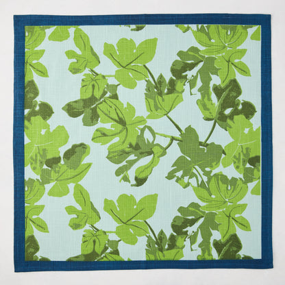 Inspired by fig groves in Spain, the Fig Printed Napkin captures the memories of a European summer. Featuring bold green fig leaves against a soft blue, this iconic print brings a colorful touch to your table. Made from 100% cotton slub, it offers a relaxed, textured feel with the durability to handle everyday dining or special occasions. This napkin will layer perfectly with other linens in the PD x HG collection, or with our signature HG Linens.