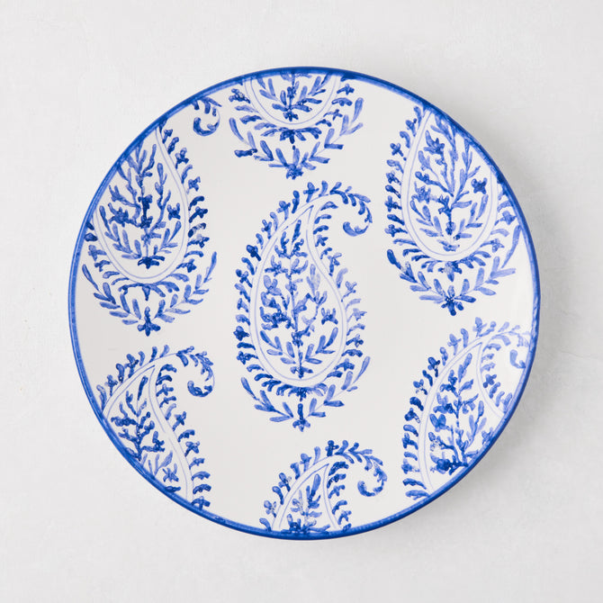 Made in Italy, each plate is hand-painted, unique, and made for mixing and matching. Inspired by a block print Peter discovered in India, the Blue Kashmir Painted Paisley Salad Plate is influenced by one of his most iconic prints. Timeless yet full of character, it layers beautifully into any table—adding a touch of the unexpected.