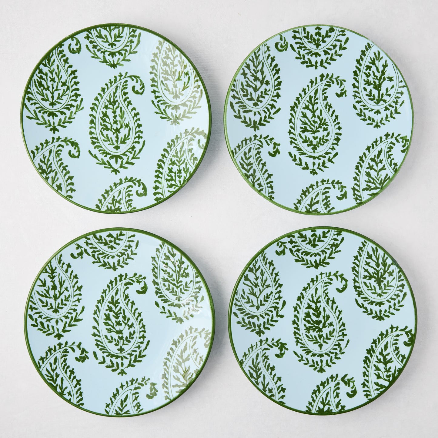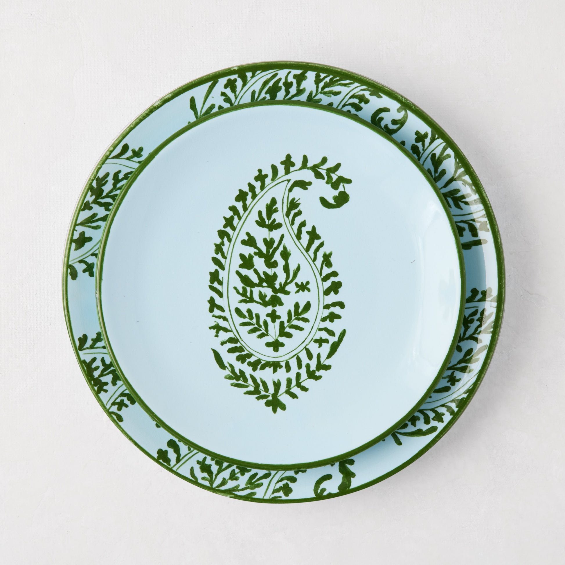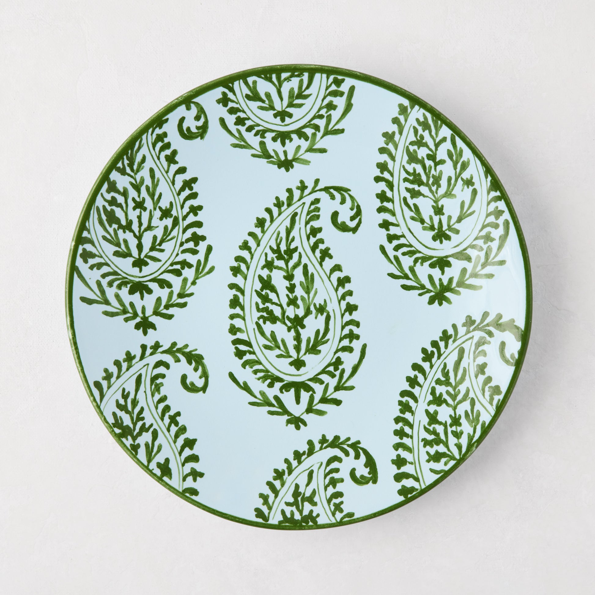 Peter Dunham + Hudson Grace Green Kashmir Hand-Painted Paisley Salad Plate