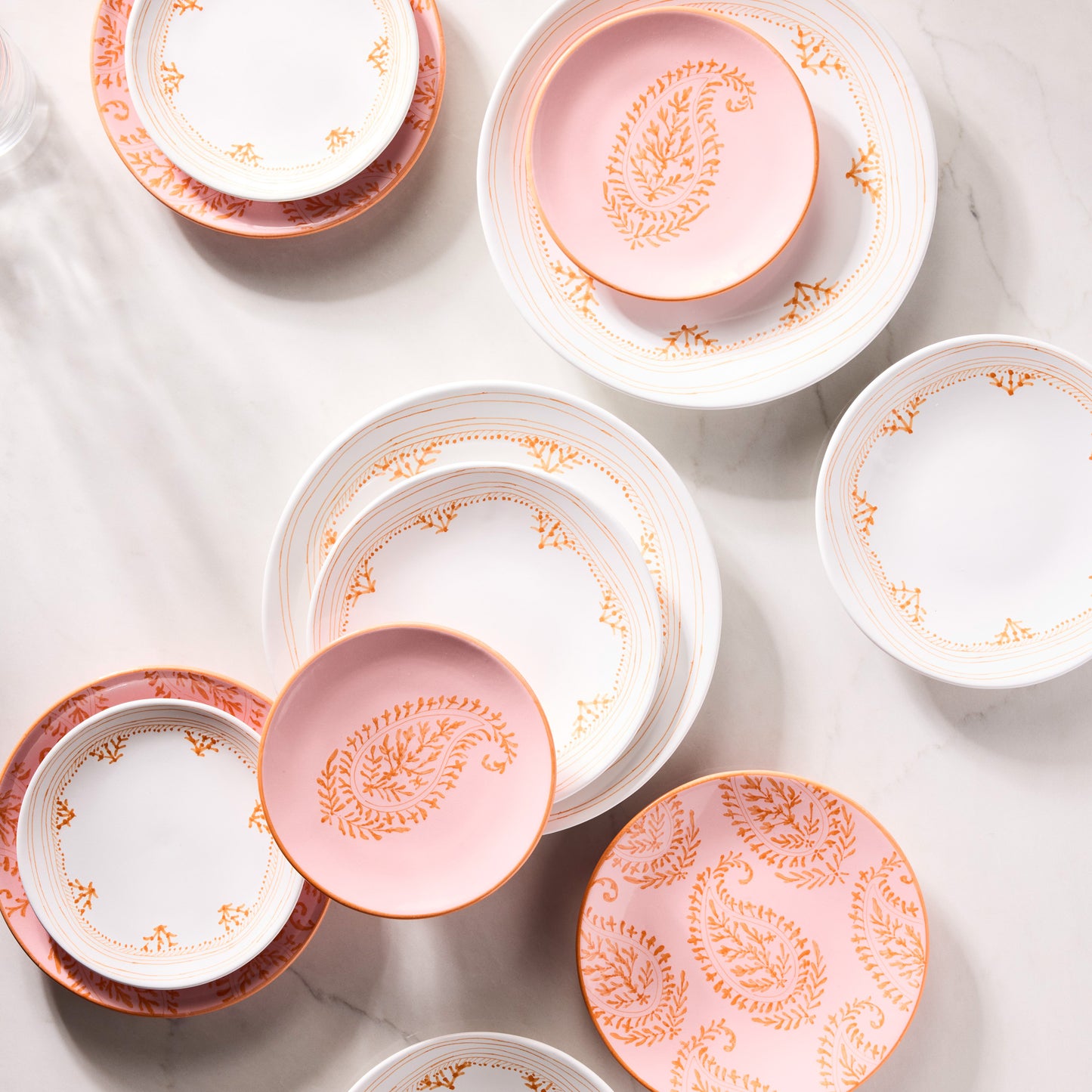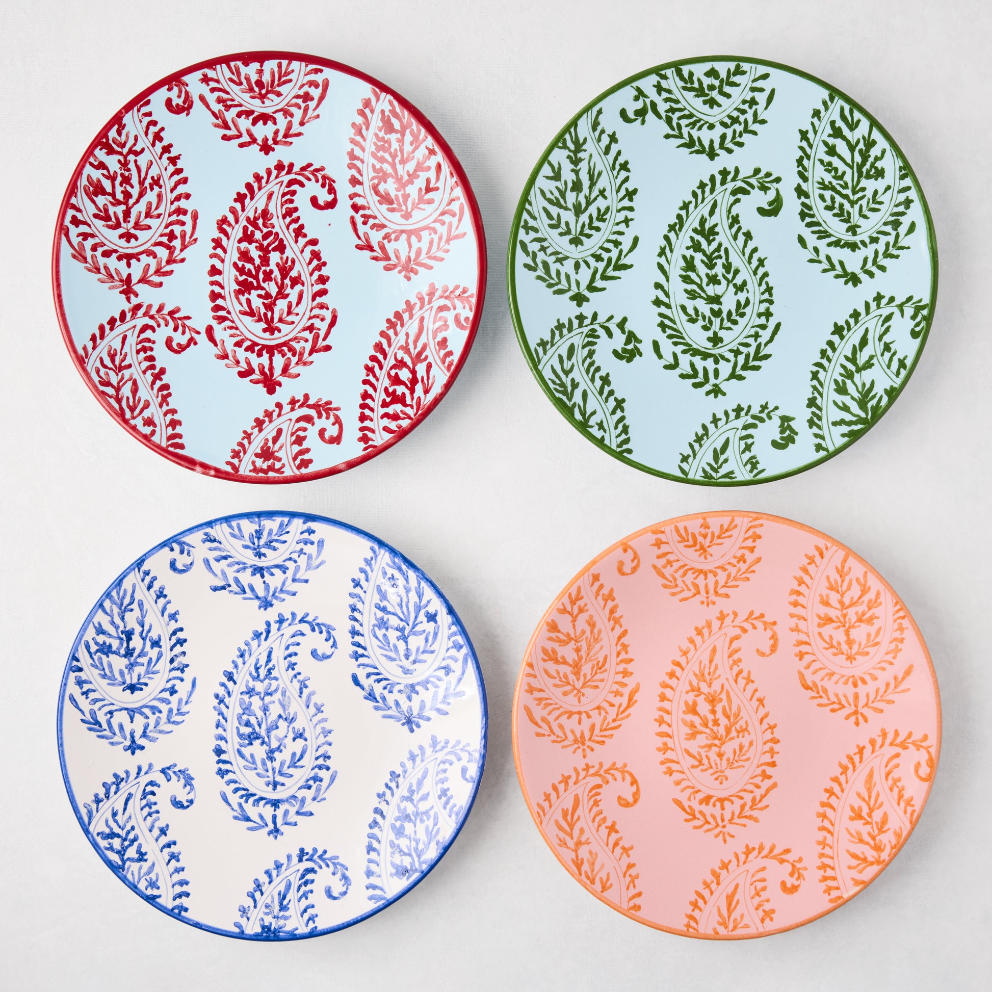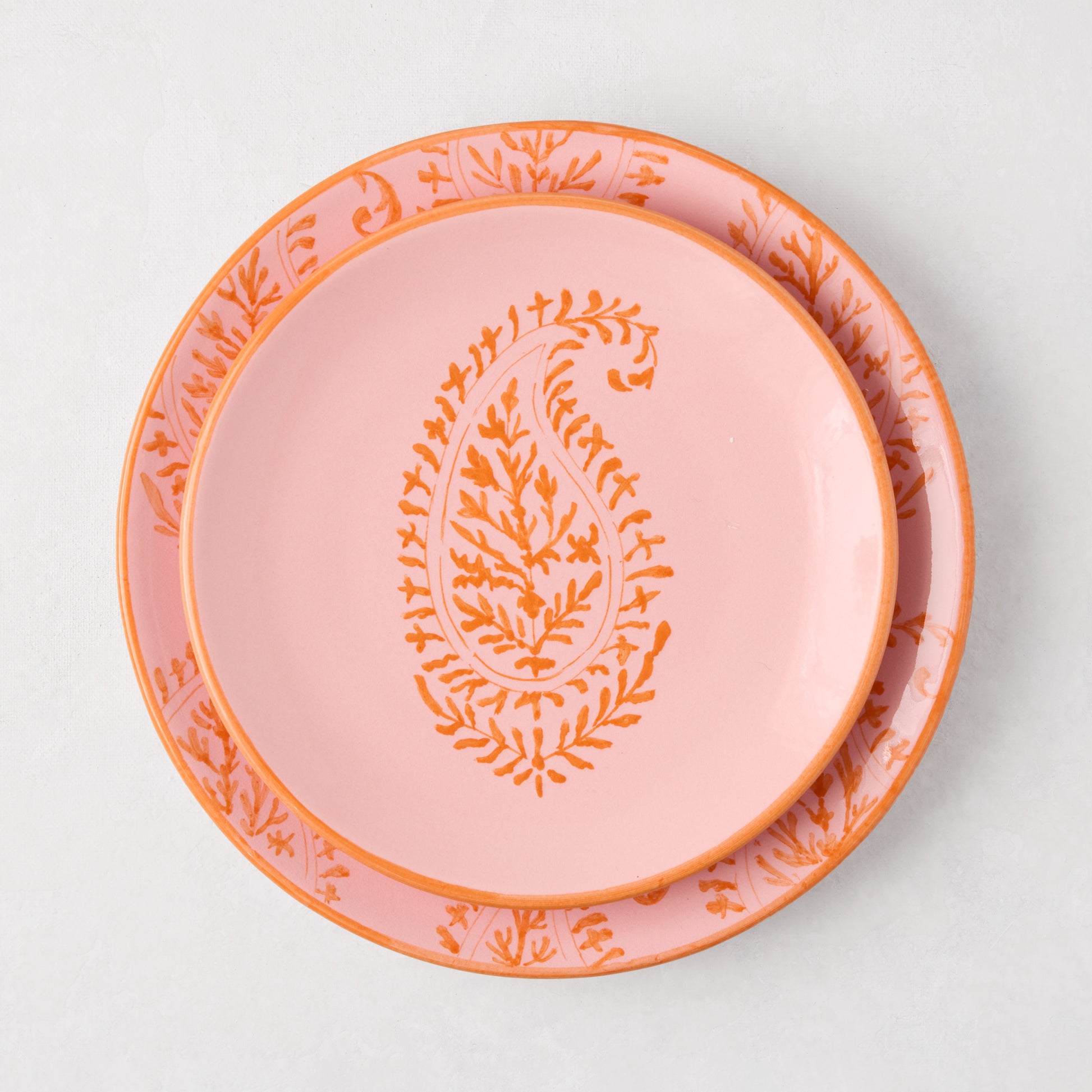 Made in Italy, each plate is hand-painted, unique, and made for mixing and matching. Inspired by a block print Peter discovered in India, the Pink Kashmir Painted Paisley Salad Plate is influenced by one of his most iconic prints. Timeless yet full of character, it layers beautifully into any table—adding a touch of the unexpected.