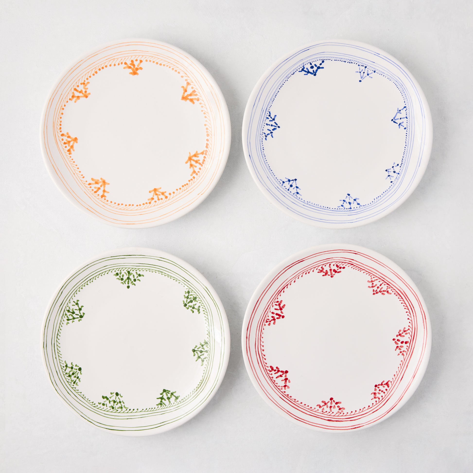 Made in Italy, each plate is intricately hand-painted, unique, and made for mixing and matching. With a colorful pattern around the border, the Orange Painted Border Appetizer Plate will bring a casual style to your table. Perfect for everyday entertaining.
