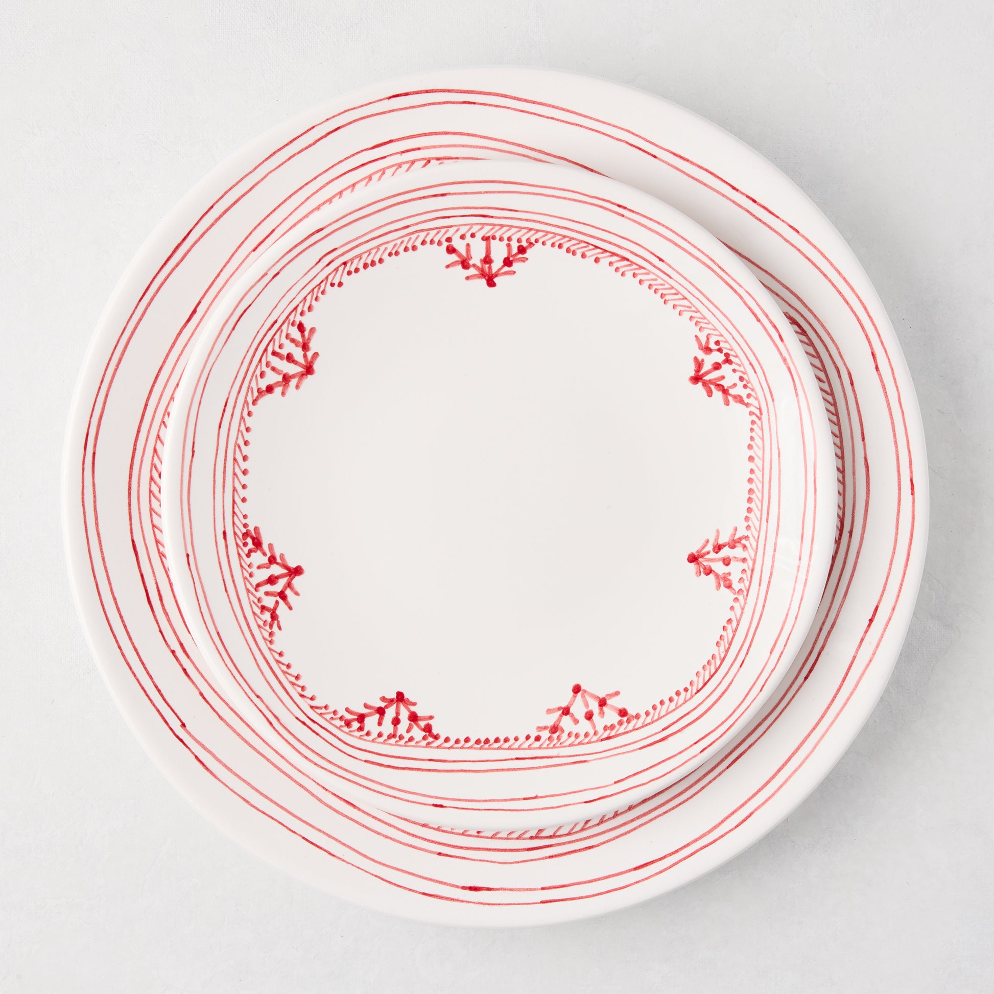 Peter Dunham + Hudson Grace Red Fez Hand-Painted Border Dinner Plate