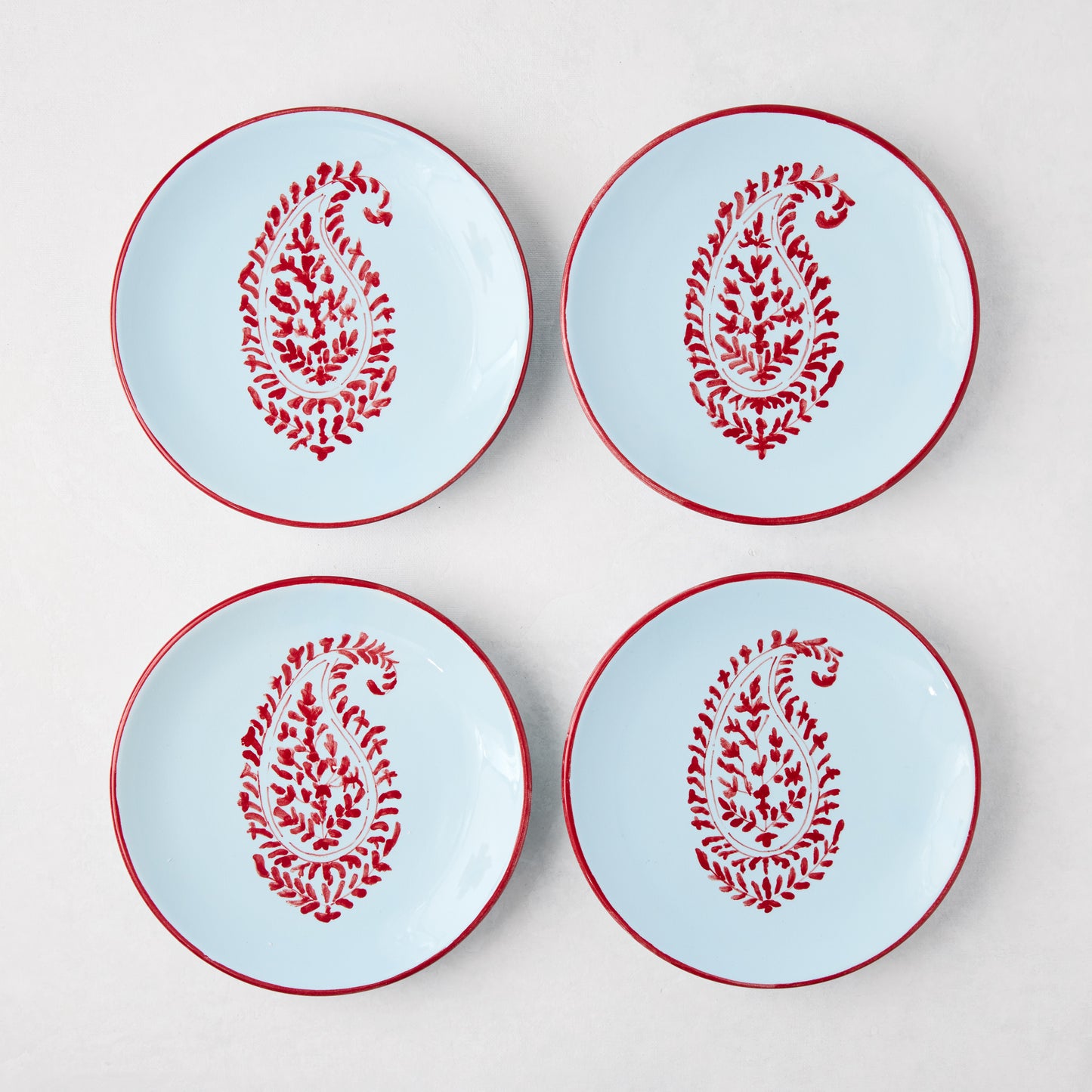 Peter Dunham + Hudson Grace Red Hand-Painted Kashmir Paisley Appetizer Plate