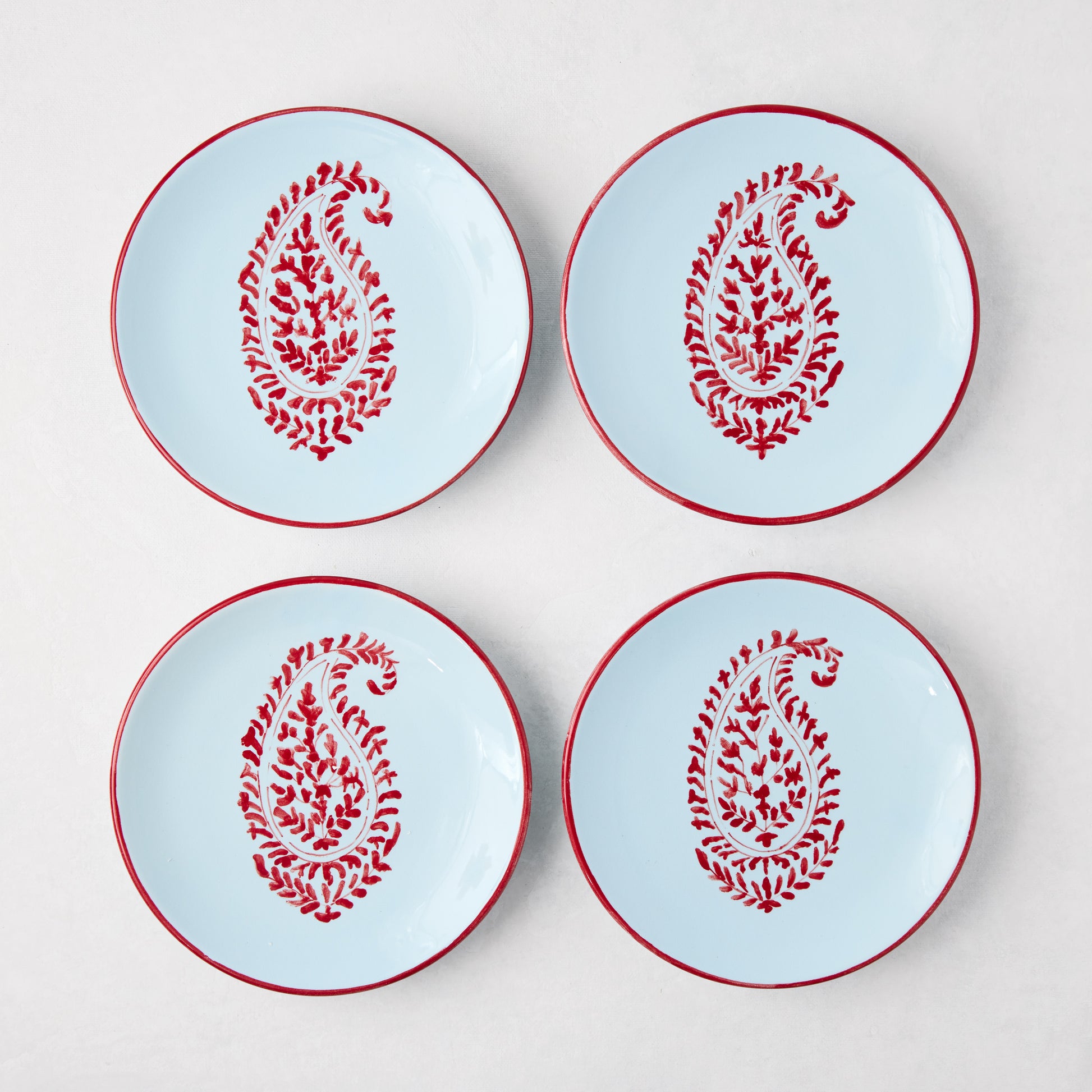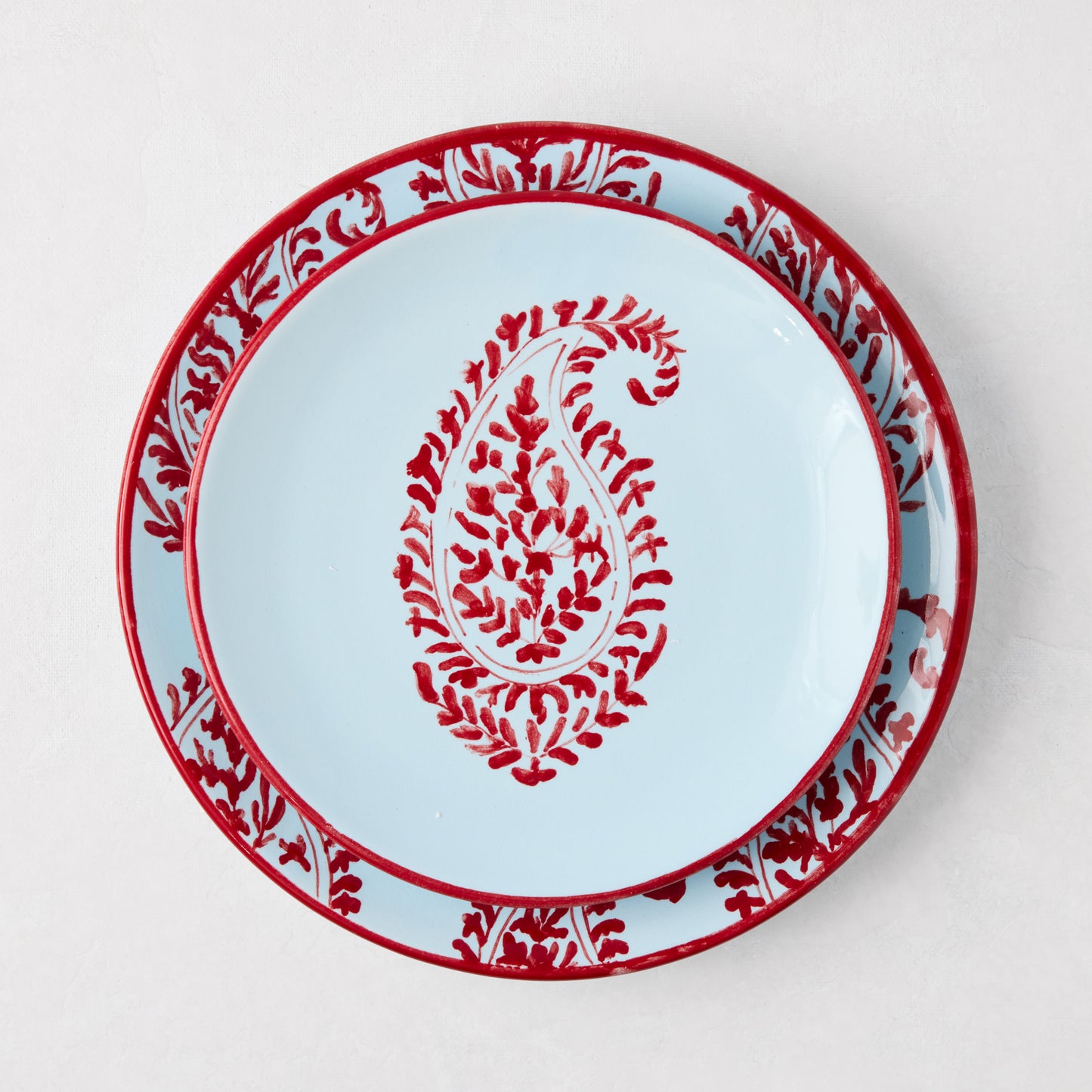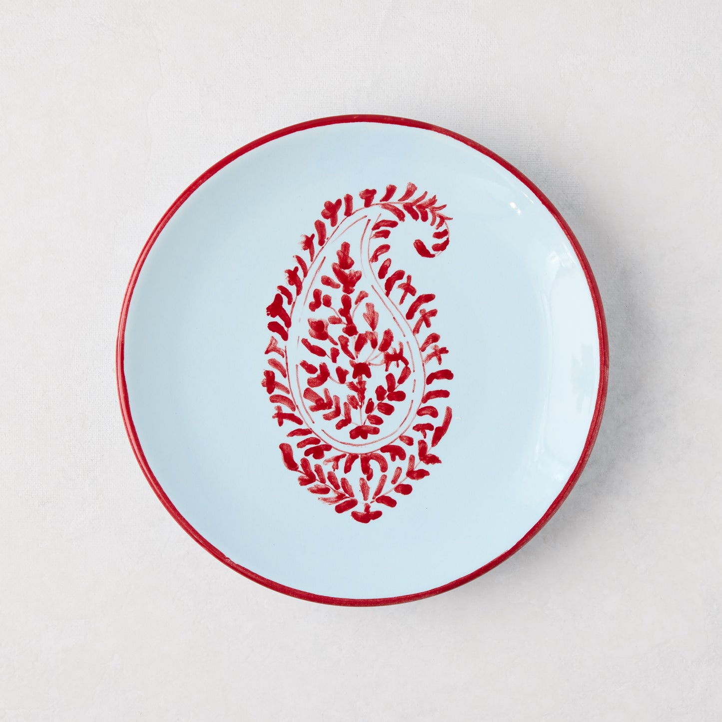 Made in Italy, each plate is hand-painted, unique, and made for mixing and matching. Inspired by a block print Peter discovered in India, the Red Kashmir Painted Paisley Appetizer Plate is influenced by one of his most iconic prints. Timeless yet full of character, it layers beautifully into any table—adding a touch of the unexpected.