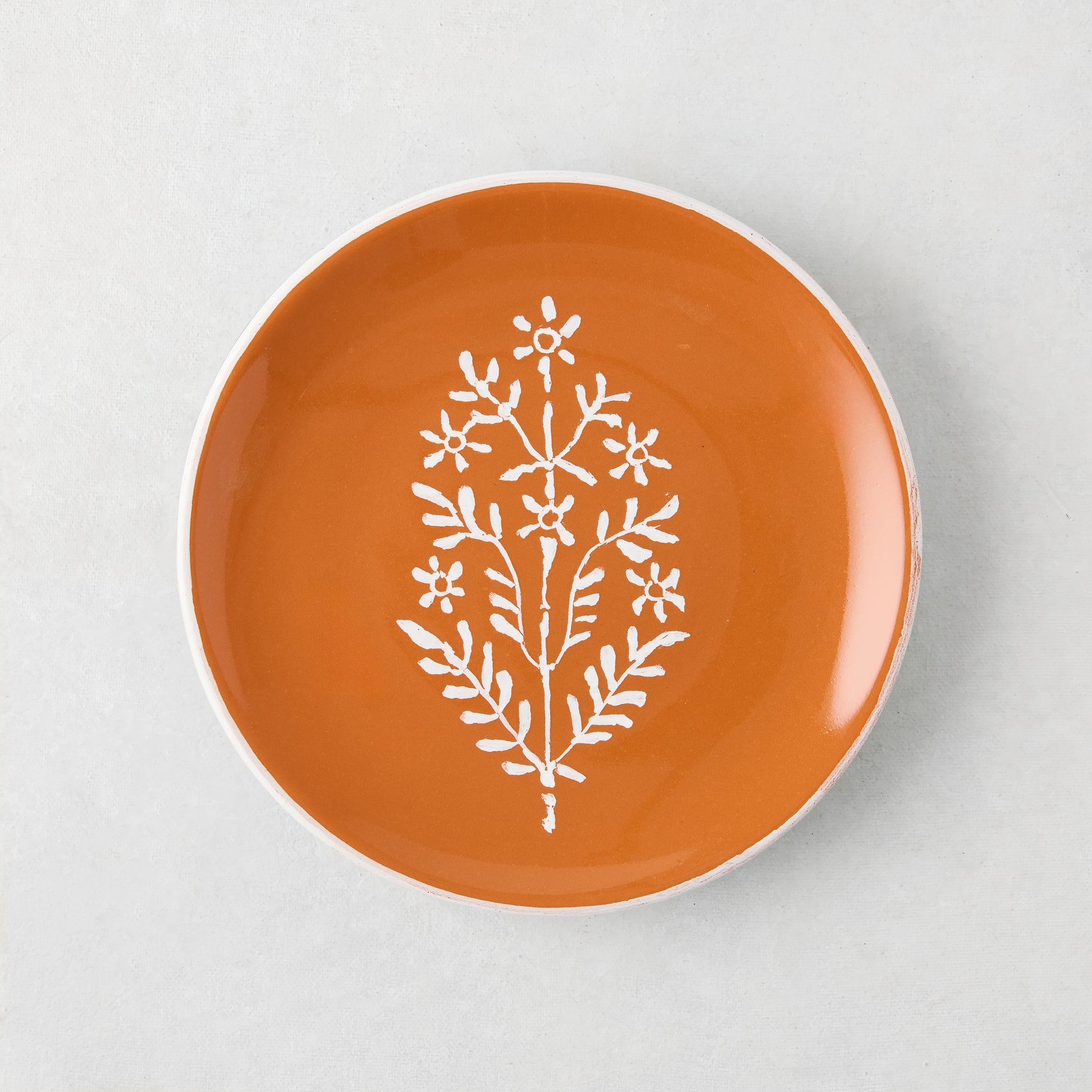 Made in Italy, each plate is hand-painted, unique, and made for mixing and matching. Inspired by a block print Peter discovered in India, the Paisley Spice Orange Appetizer Plate is inspired by floral prints. Timeless yet full of character, it layers beautifully into any table—adding a touch of the unexpected.