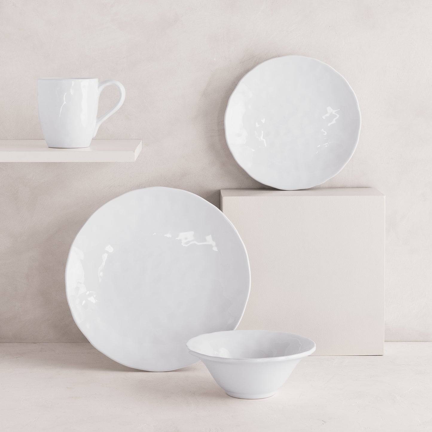 In Portugal, our ceramic dinnerware is crafted using heritage techniques passed down through generations. Skilled artisans begin with locally sourced clay, meticulously shaping it into our plates, bowls, mugs, and serveware. After shaping, the ceramics are left to dry before firing in kilns at high temperatures. Finally, our pieces are glazed with our signature creamy white glaze, imparting a modern touch to traditional shapes. The organic appeal of ceramic, in texture and appearance, fosters a sense of warmth and comfort, making guests and diners want to linger, laugh, and enjoy a meal (How European is that!)