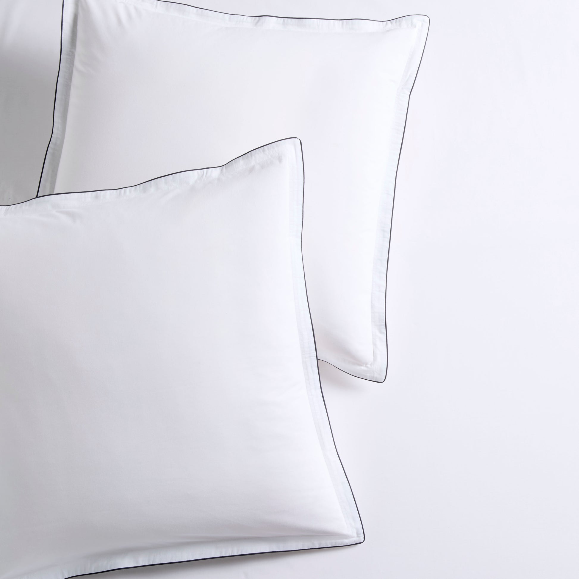 A touch of color and just the right amount of detail. The Navy Piped Percale Euro Sham Set is accented with delicate navy piping and subtle double-stitch detailing. This bedding brings crisp, tailored casual to your bed. Made in Portugal from 100% cotton, this super soft, 310-thread-count percale is meant to be your new everyday.