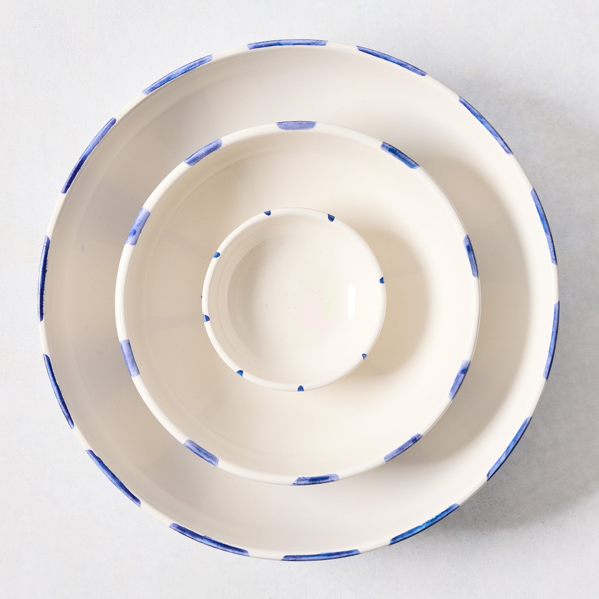 Serve up stripes with the Portofino Blue Stripe Medium Bowl. Slightly bigger than a soup bowl, the thick, hand-painted blue stripes add a playful touch to the classic shape. Made in Italy from ceramic, this bowl is perfect for anything from smaller salads to your favorite pasta. With three different sizes, these bowls range from serving to dipping, to fit all your hosting needs.