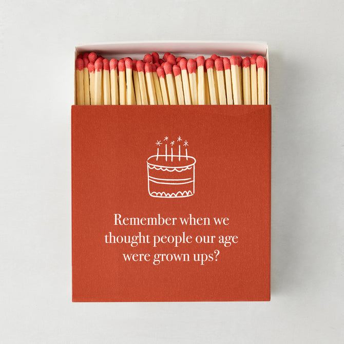 Exclusively Hudson Grace. Spark conversation with our oversized "Remember When" matches. Designed in-house and printed in England, these matches make the perfect hostess gift—or when paired with one of our signature candles, transform a single present into a grand gesture.